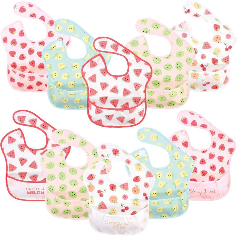 Hudson Baby Unisex Baby Waterproof Polyester Bibs, Paper Airplane, Feeder(Cute Fruit)