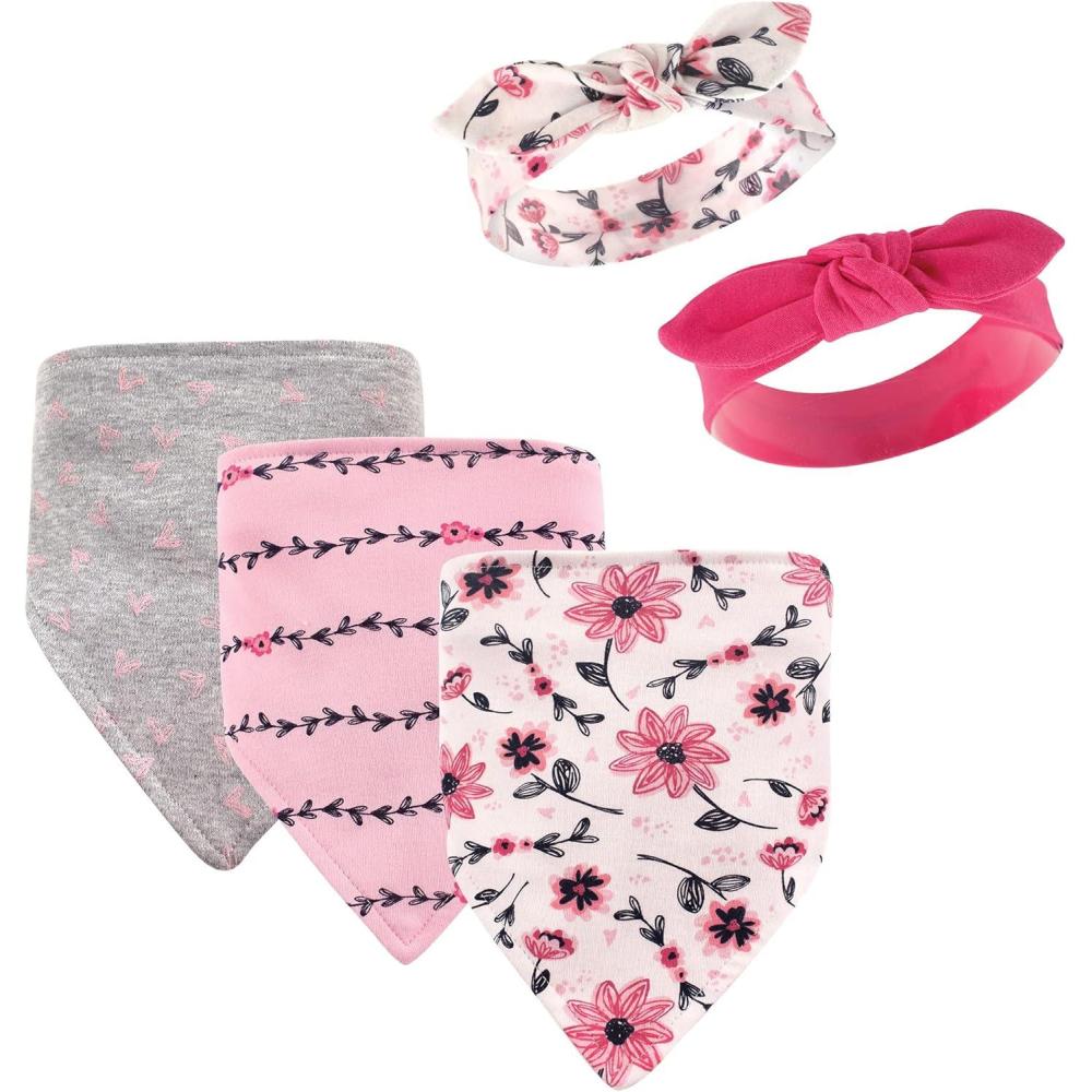 Hudson Baby Unisex BabyCotton Bib and Headband or Caps Set