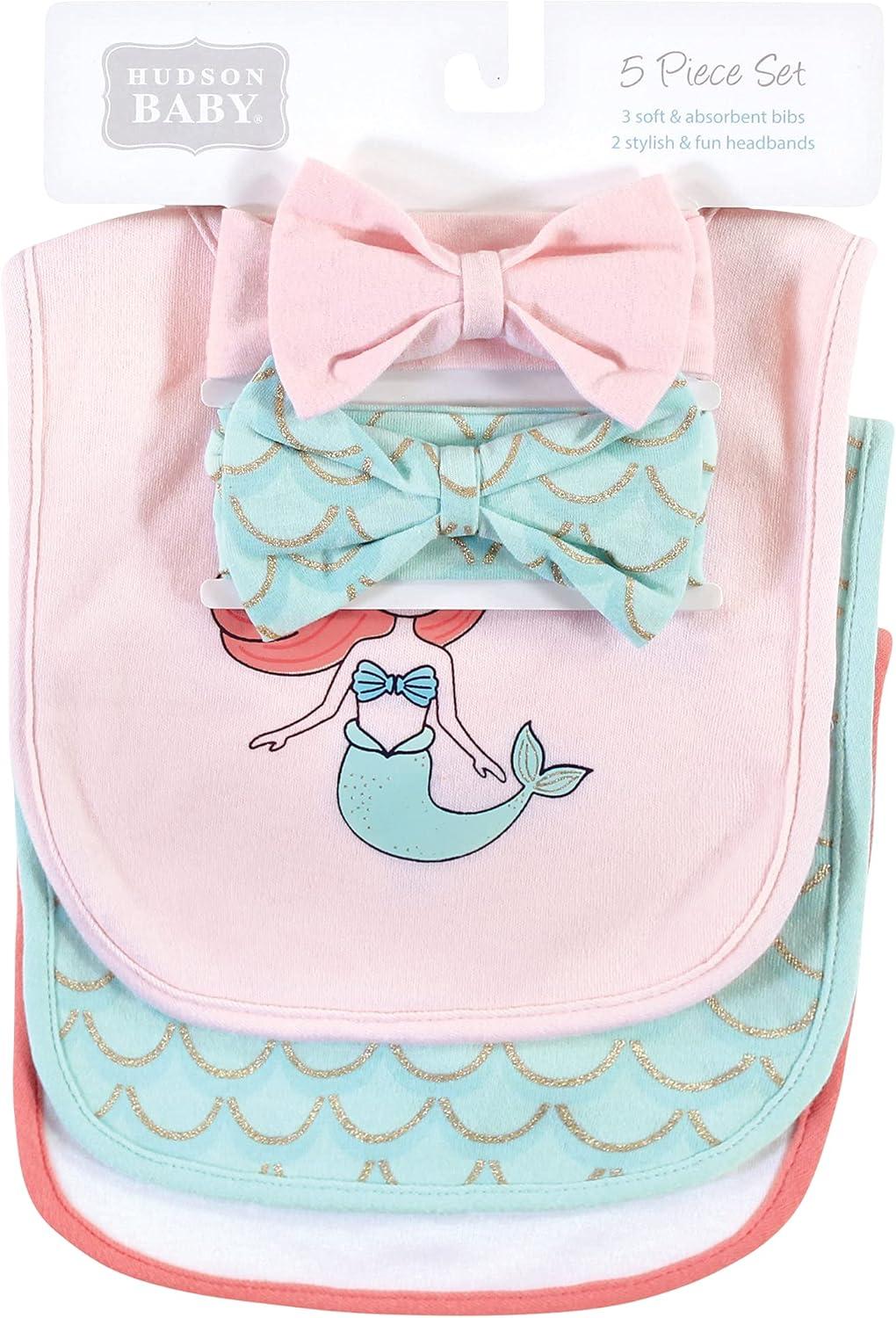 Hudson Baby Unisex BabyCotton Bib and Headband or Caps Set