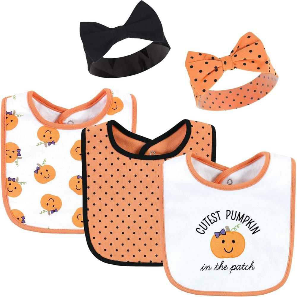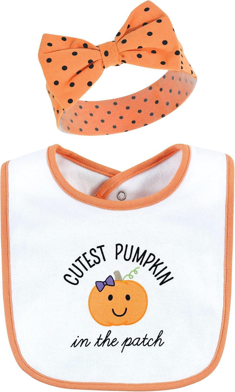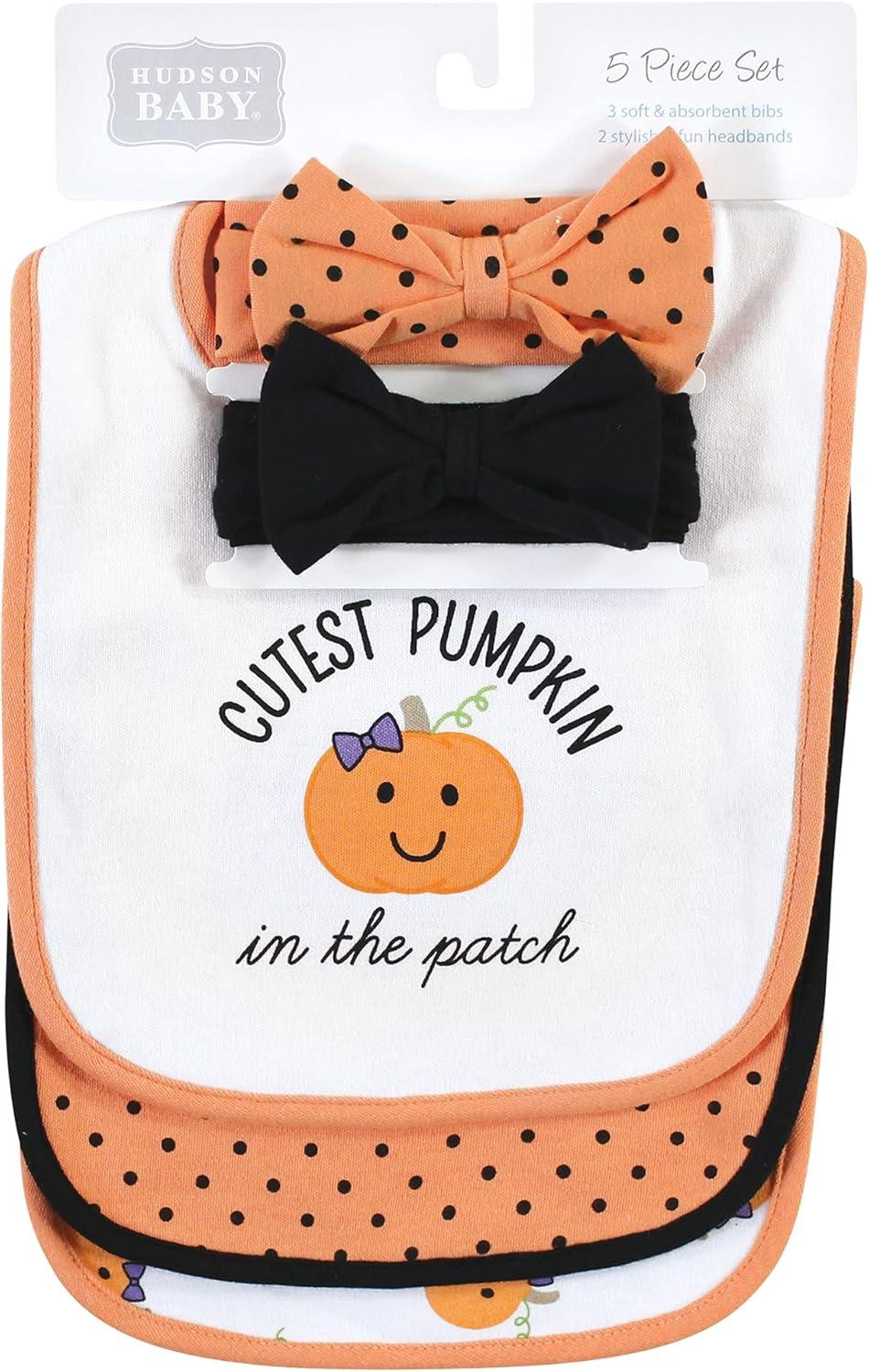 Hudson Baby Unisex BabyCotton Bib and Headband or Caps Set(Cutest Pumpkin)