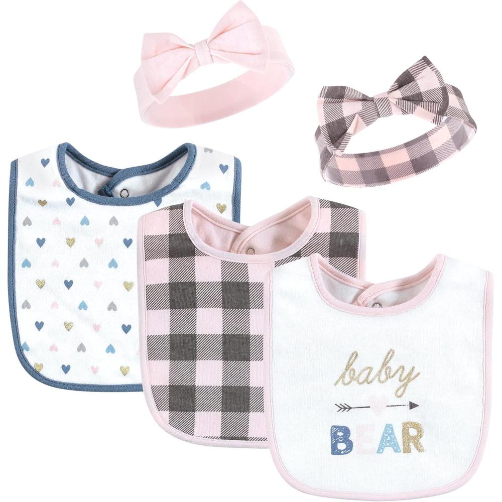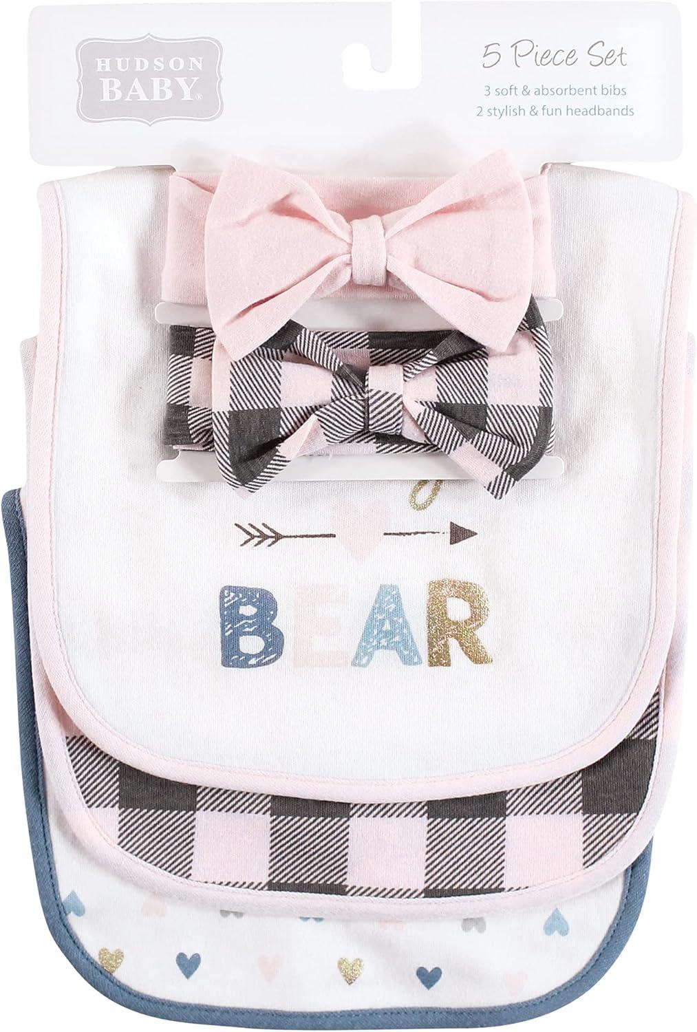 Hudson Baby Unisex BabyCotton Bib and Headband or Caps Set