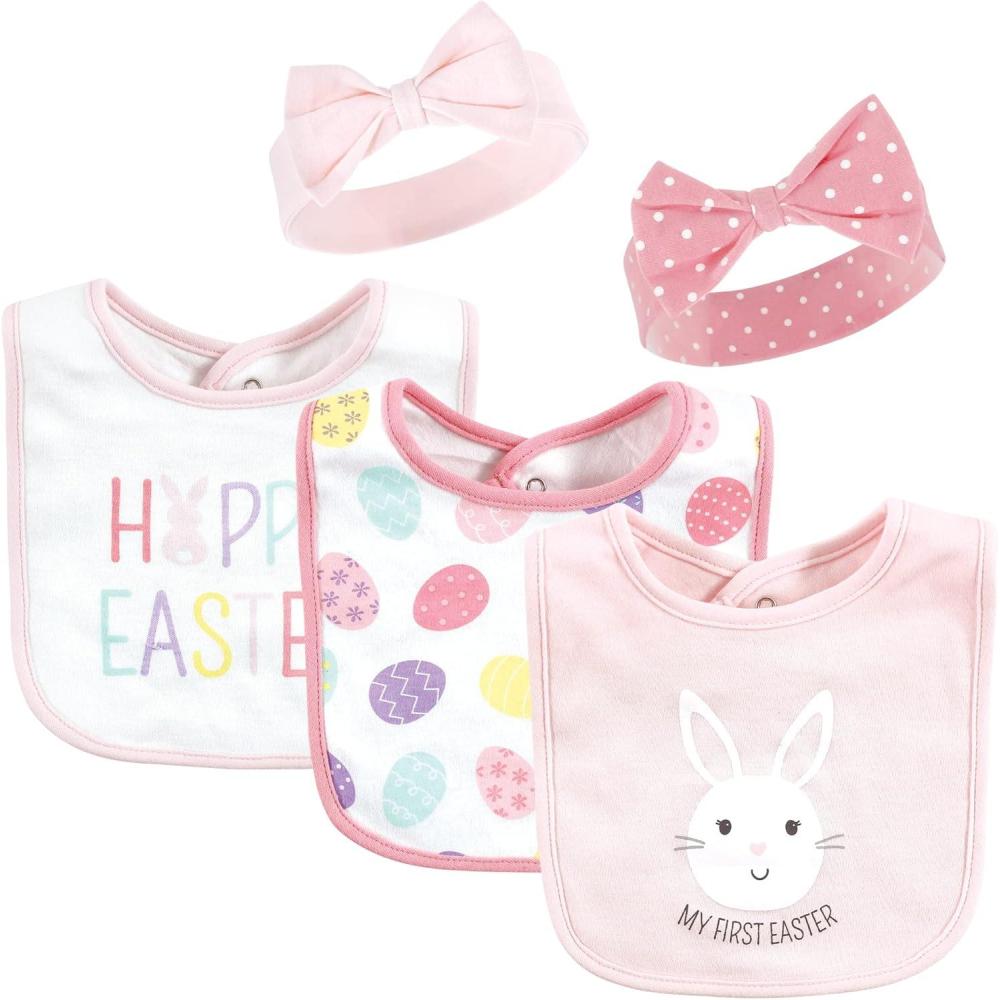 Hudson Baby Unisex BabyCotton Bib and Headband or Caps Set