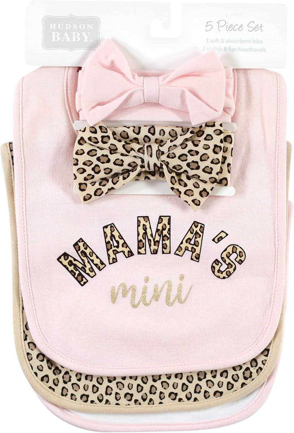 Hudson Baby Unisex BabyCotton Bib and Headband or Caps Set(Leopard Mamas Mini)
