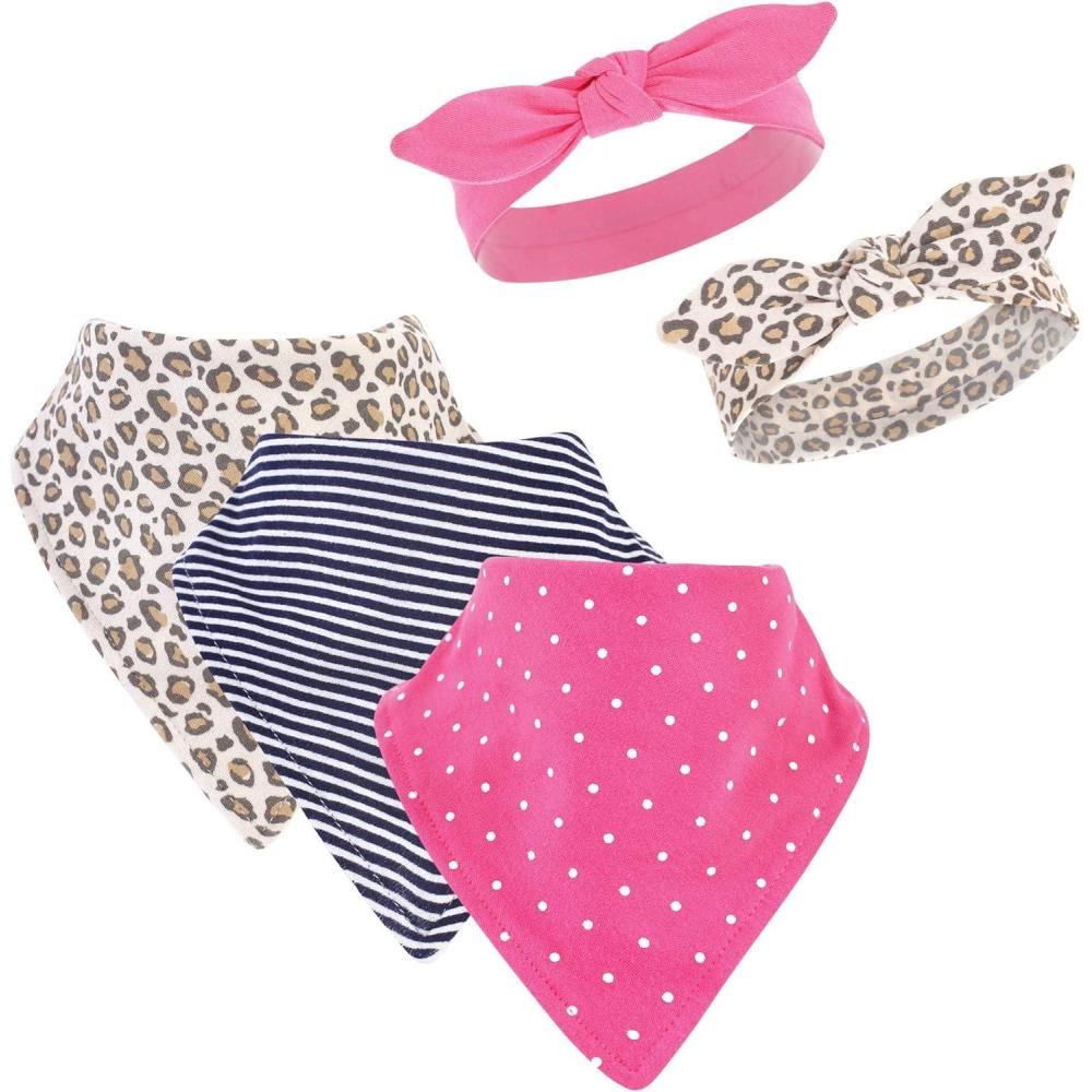 Hudson Baby Unisex BabyCotton Bib and Headband or Caps Set