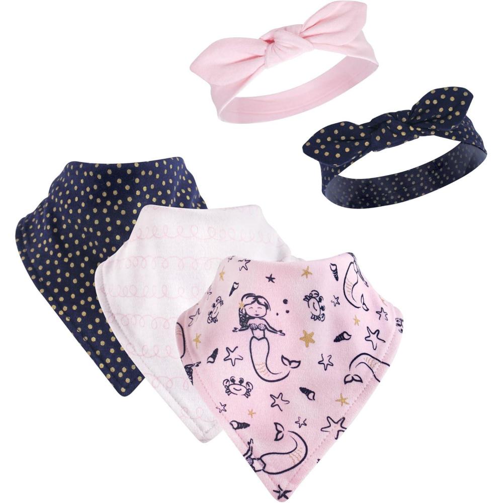 Hudson Baby Unisex BabyCotton Bib and Headband or Caps Set