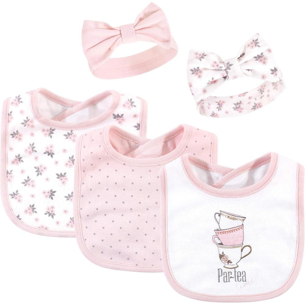 Hudson Baby Unisex BabyCotton Bib and Headband or Caps Set