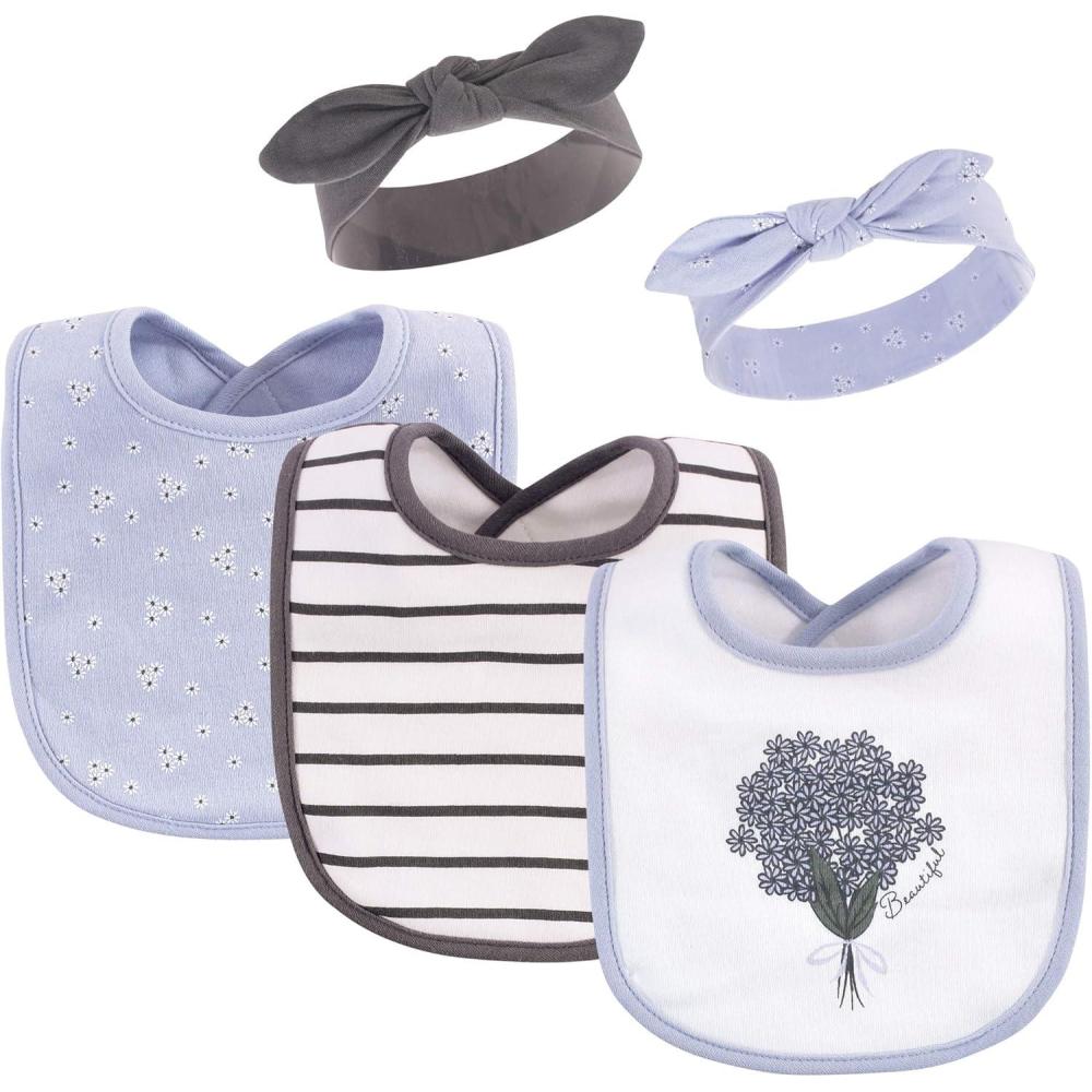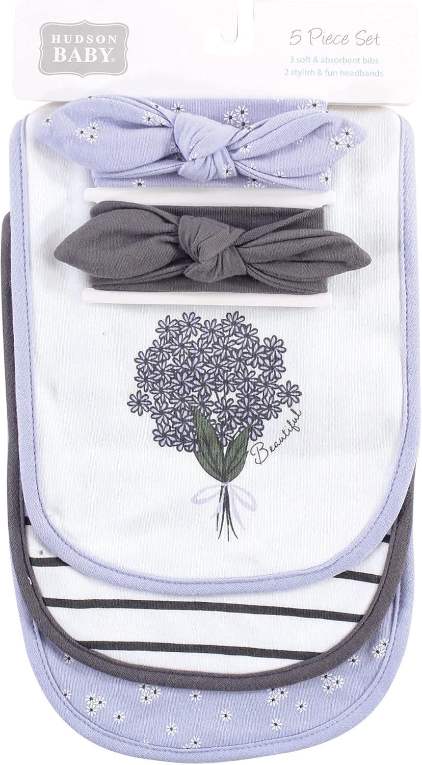 Hudson Baby Unisex BabyCotton Bib and Headband or Caps Set