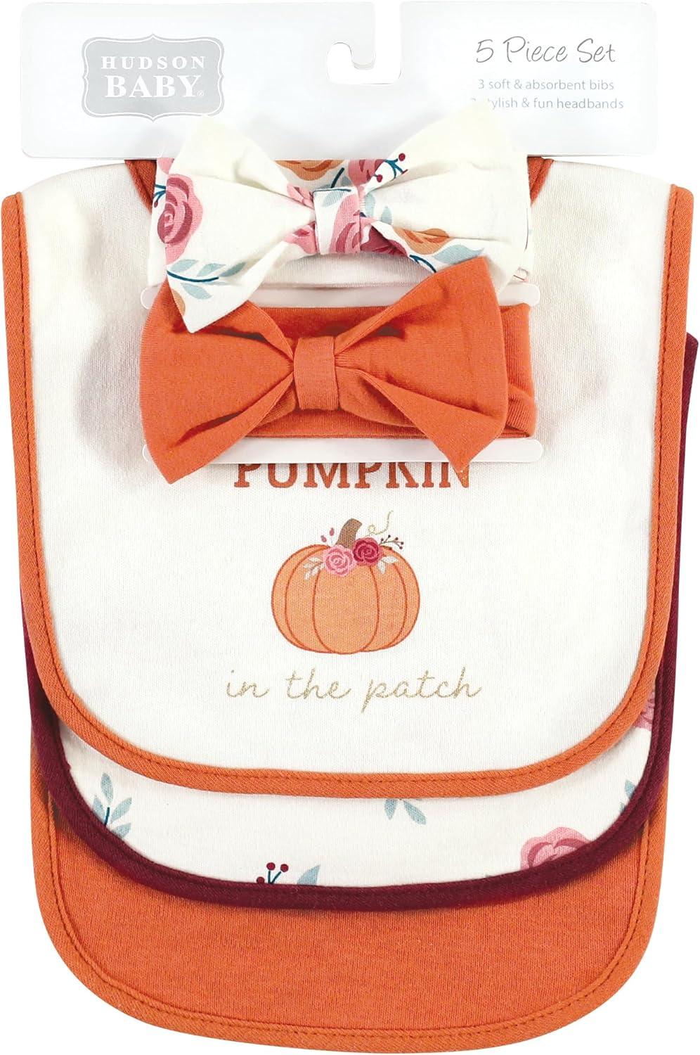 Hudson Baby Unisex BabyCotton Bib and Headband or Caps Set