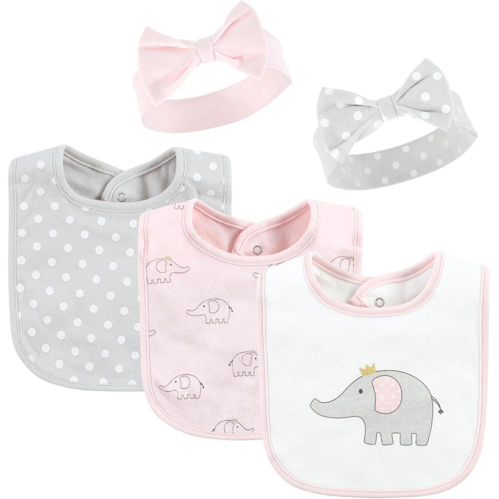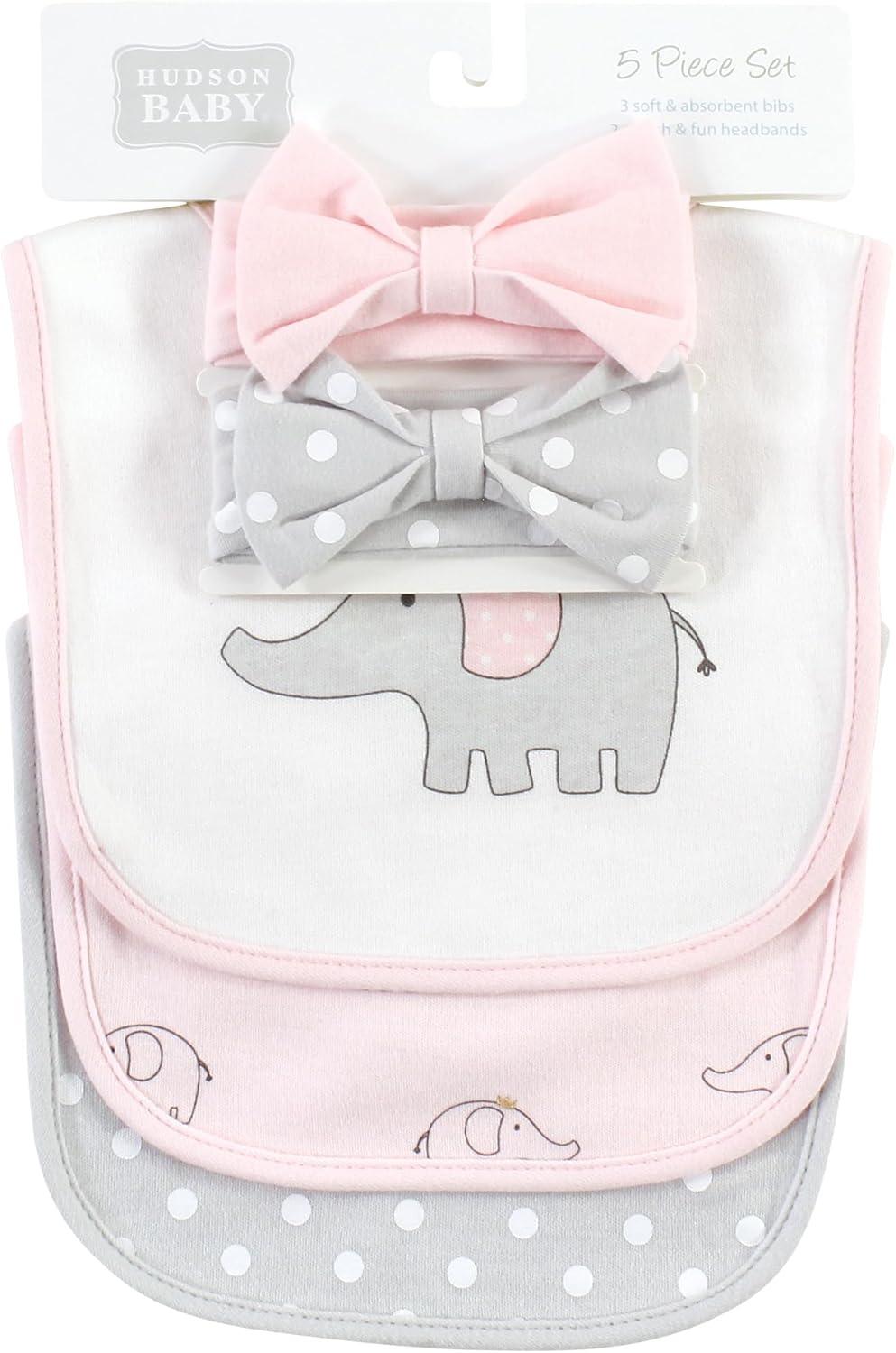 Hudson Baby Unisex BabyCotton Bib and Headband or Caps Set