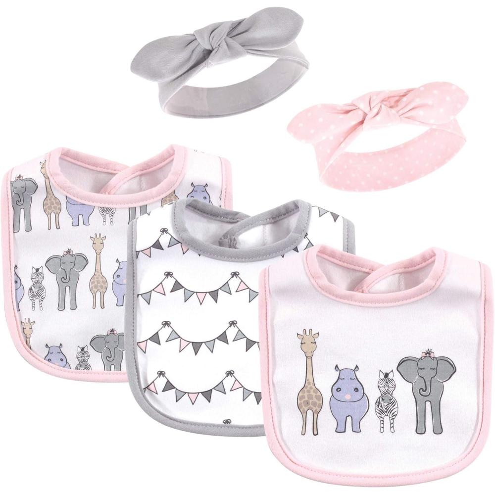 Hudson Baby Unisex BabyCotton Bib and Headband or Caps Set