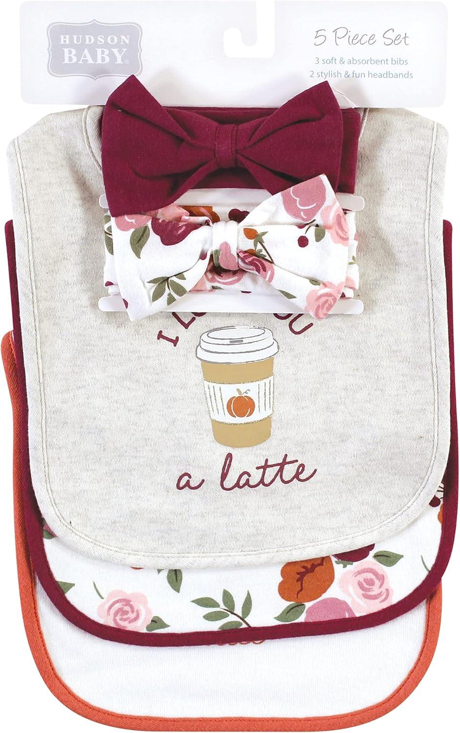 Hudson Baby Unisex BabyCotton Bib and Headband or Caps Set