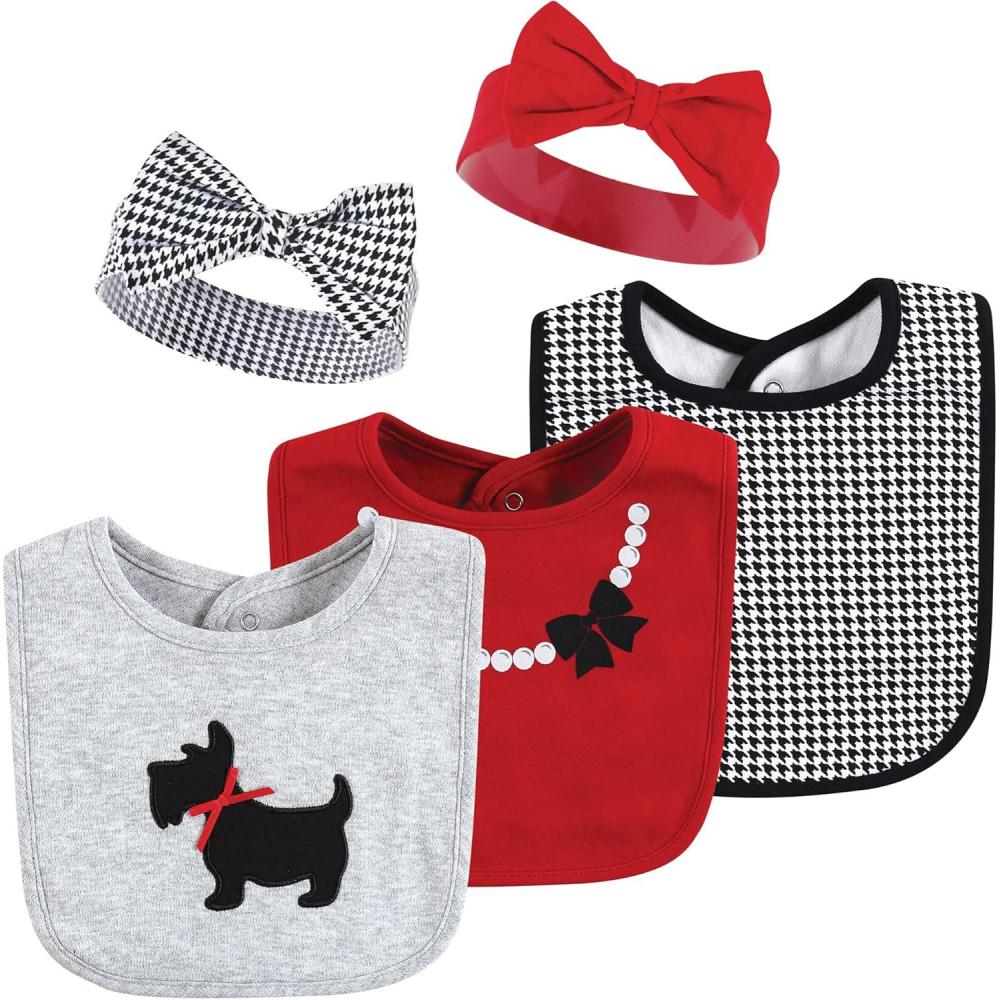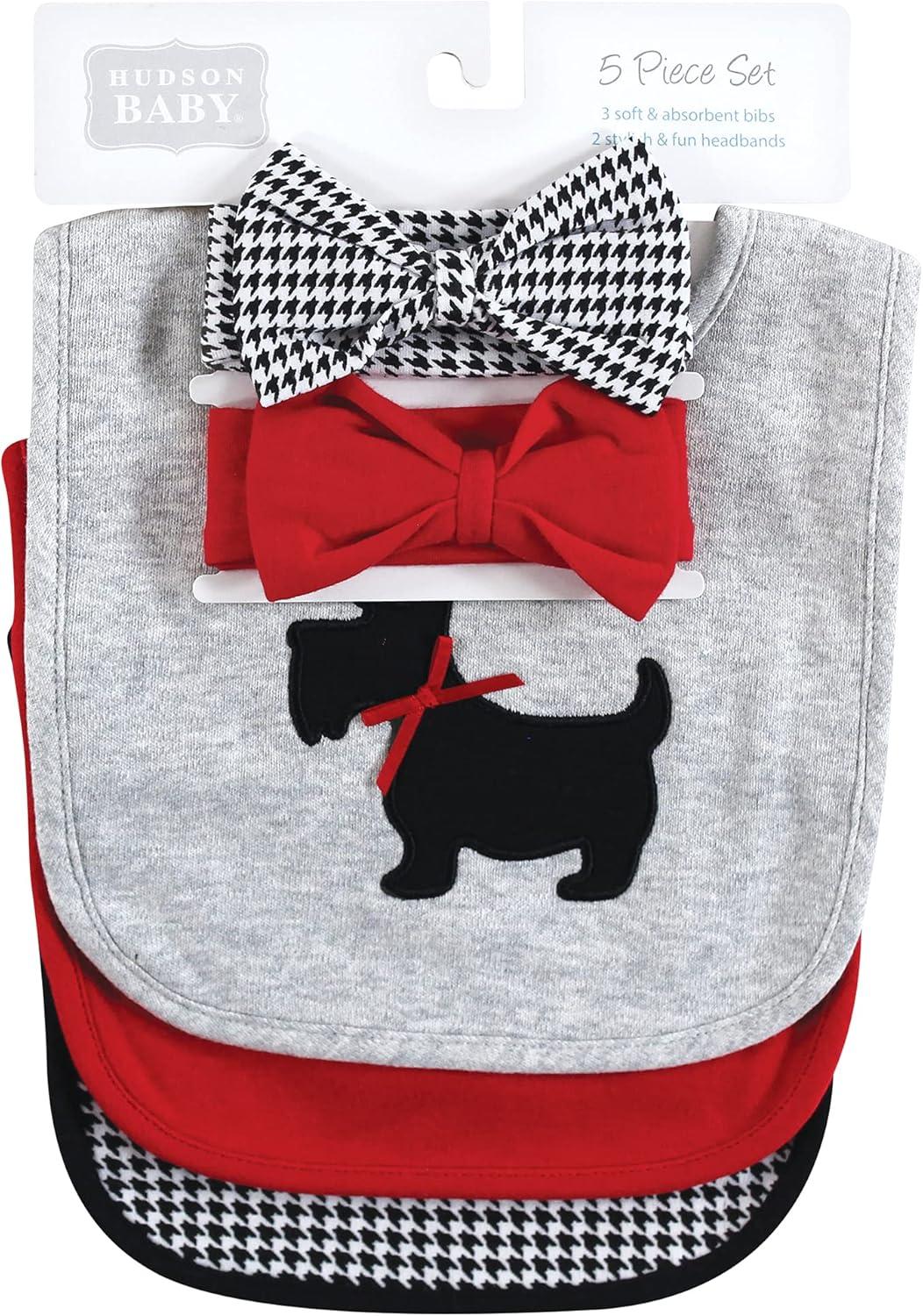 Hudson Baby Unisex BabyCotton Bib and Headband or Caps Set(Scottie Dog)