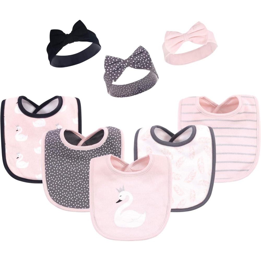 Hudson Baby Unisex BabyCotton Bib and Headband or Caps Set