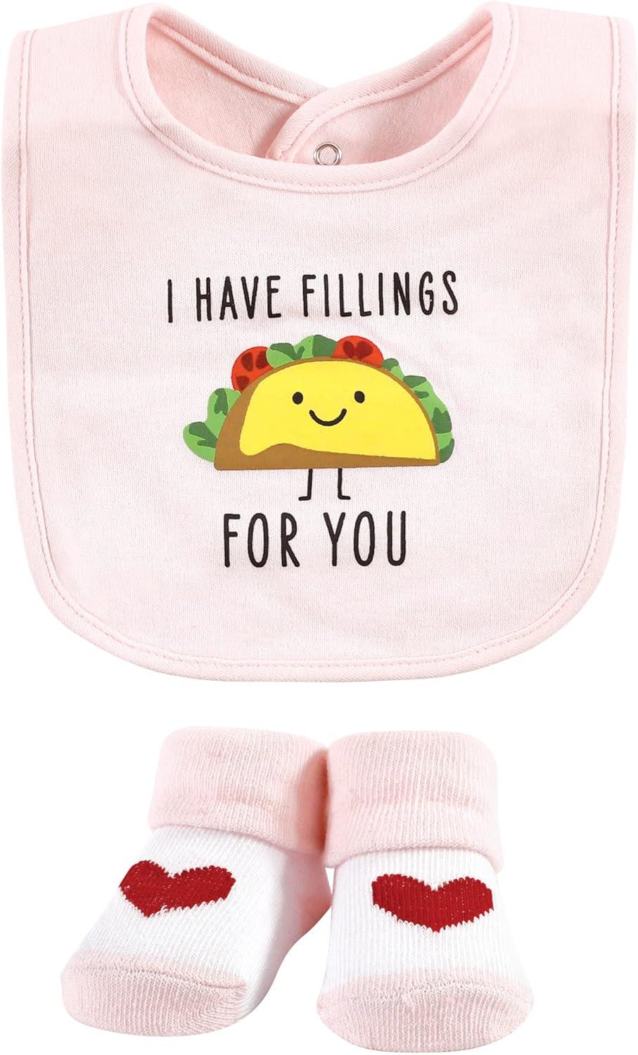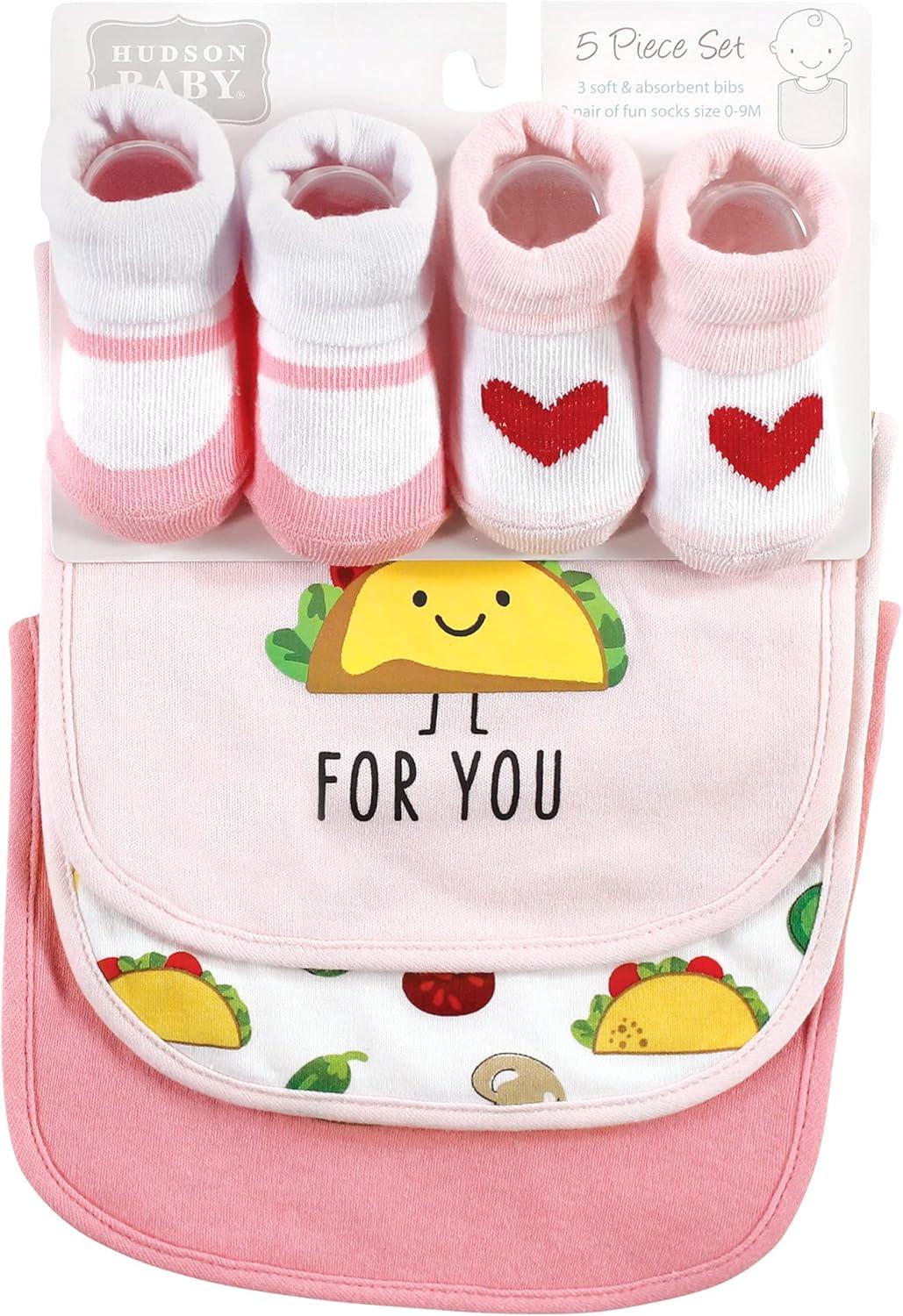 Hudson Baby Unisex BabyCotton Bib and Sock Set(Girl Pizza Taco)