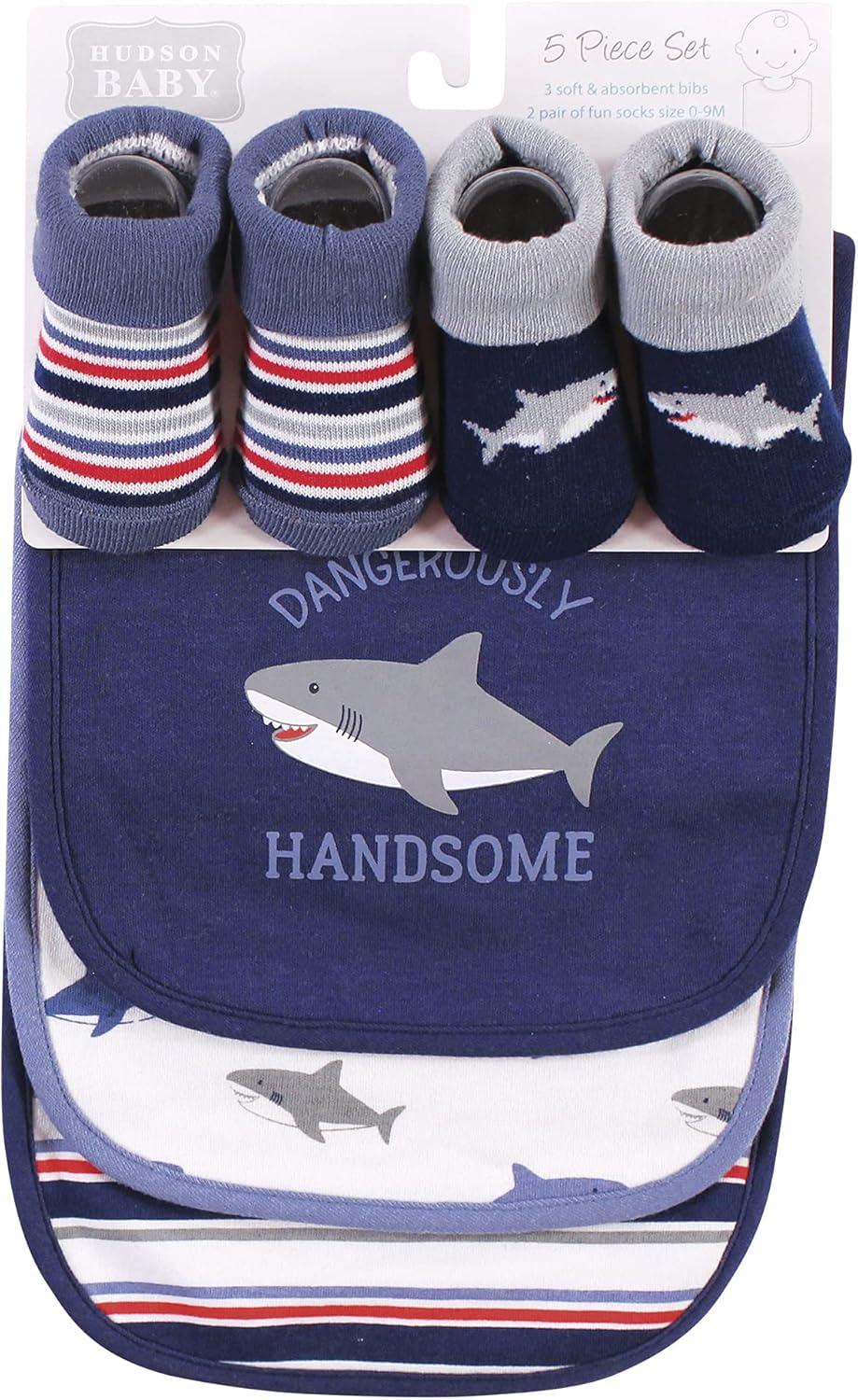 Hudson Baby Unisex BabyCotton Bib and Sock Set(Handsome Shark)