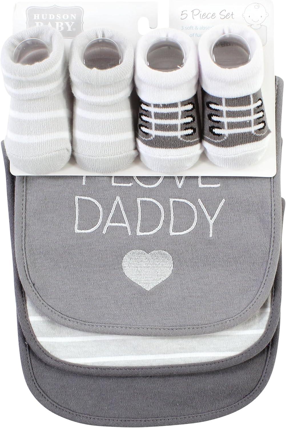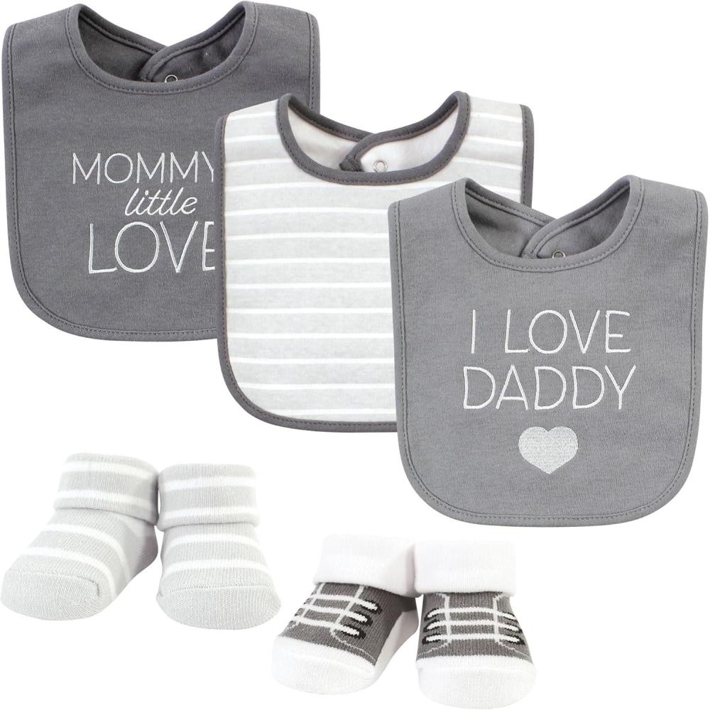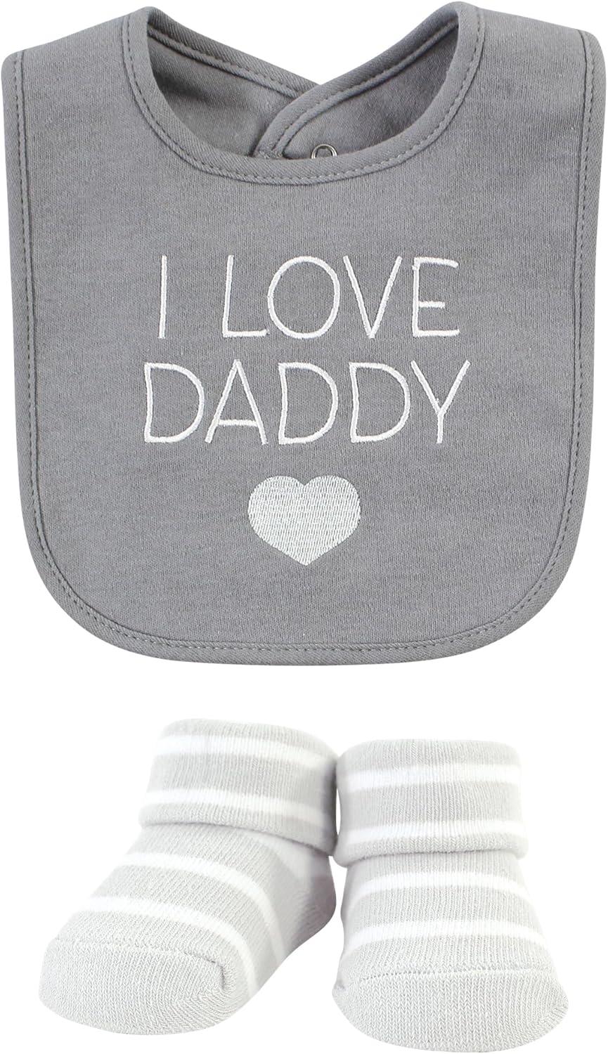 Hudson Baby Unisex BabyCotton Bib and Sock Set(I Love Grey)