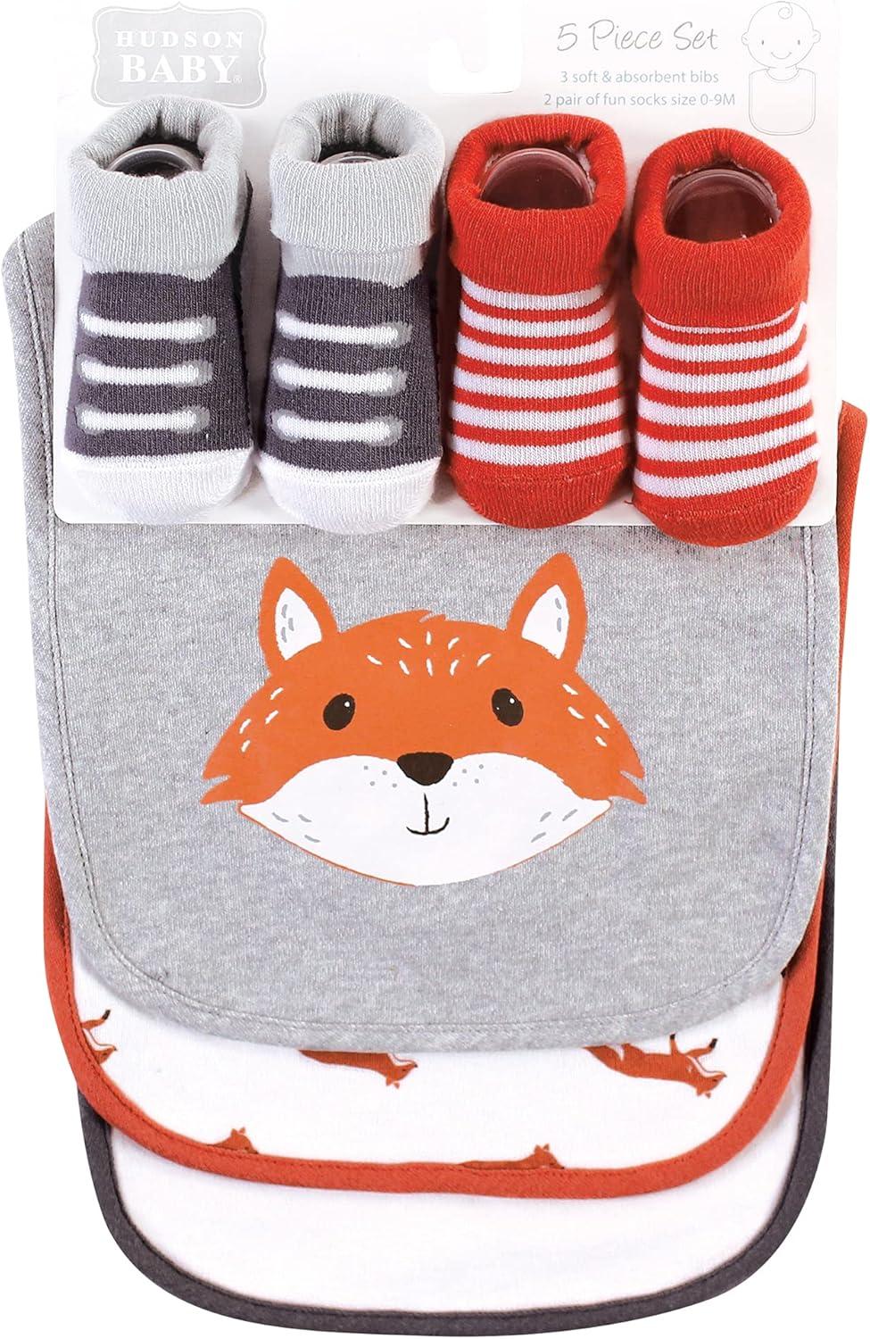 Hudson Baby Unisex BabyCotton Bib and Sock Set(Little Fox)