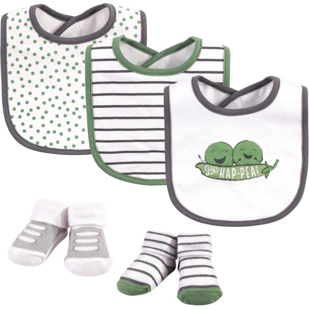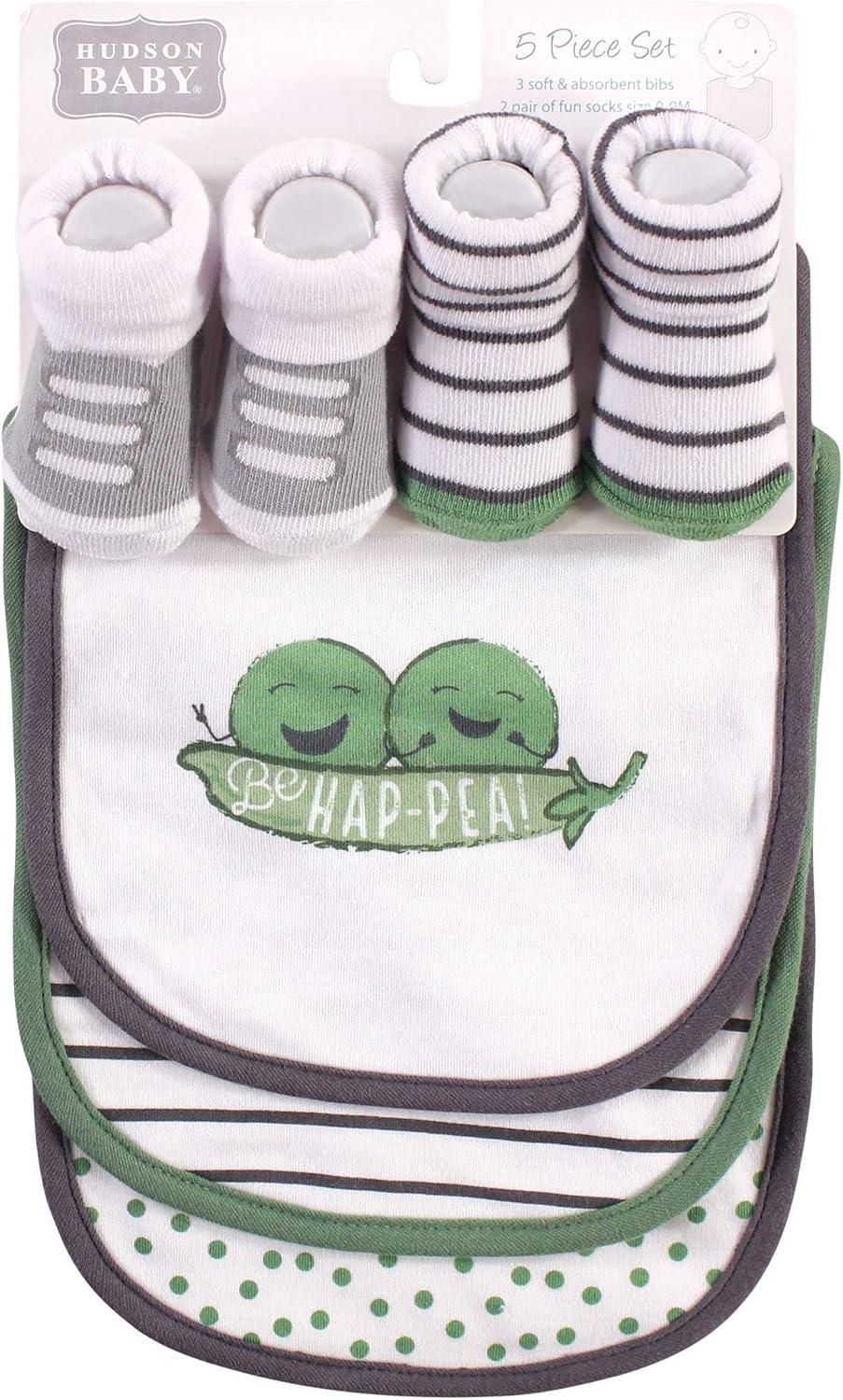 Hudson Baby Unisex BabyCotton Bib and Sock Set(Peas)