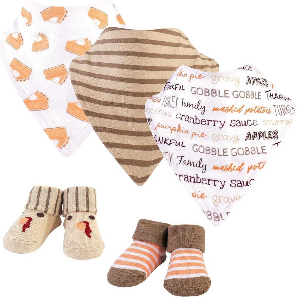 Hudson Baby Unisex BabyCotton Bib and Sock Set(Pumpkin Pie)