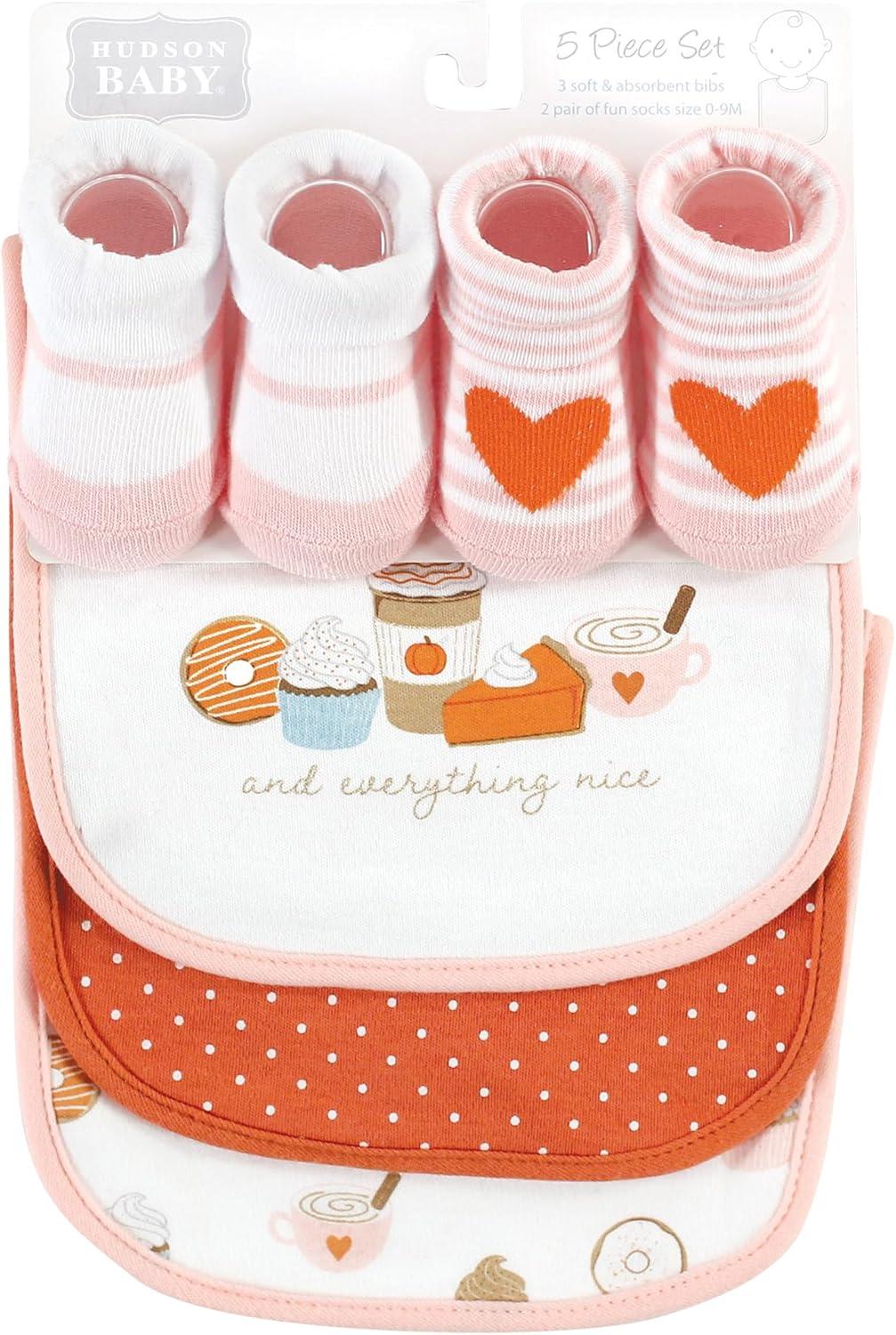 Hudson Baby Unisex BabyCotton Bib and Sock Set(Pumpkin Pie)