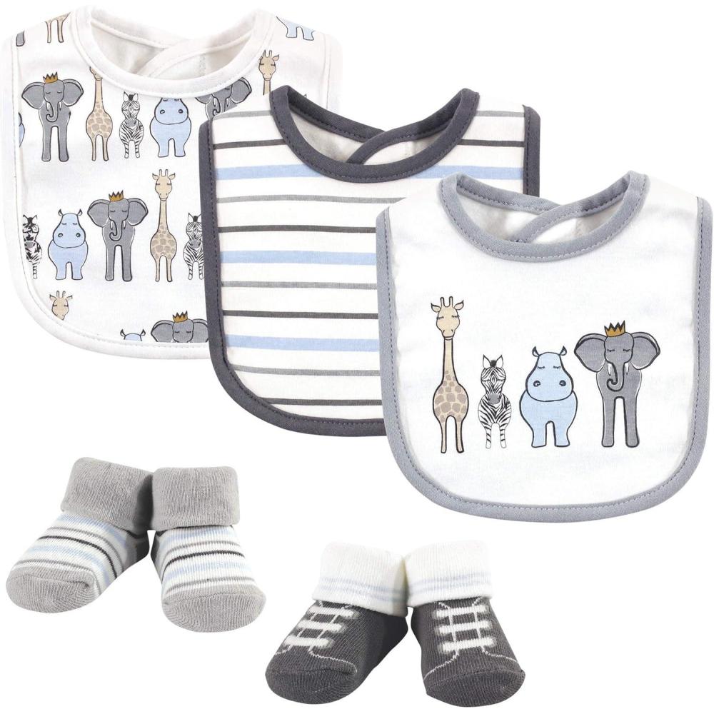 Hudson Baby Unisex BabyCotton Bib and Sock Set(Royal Safari)