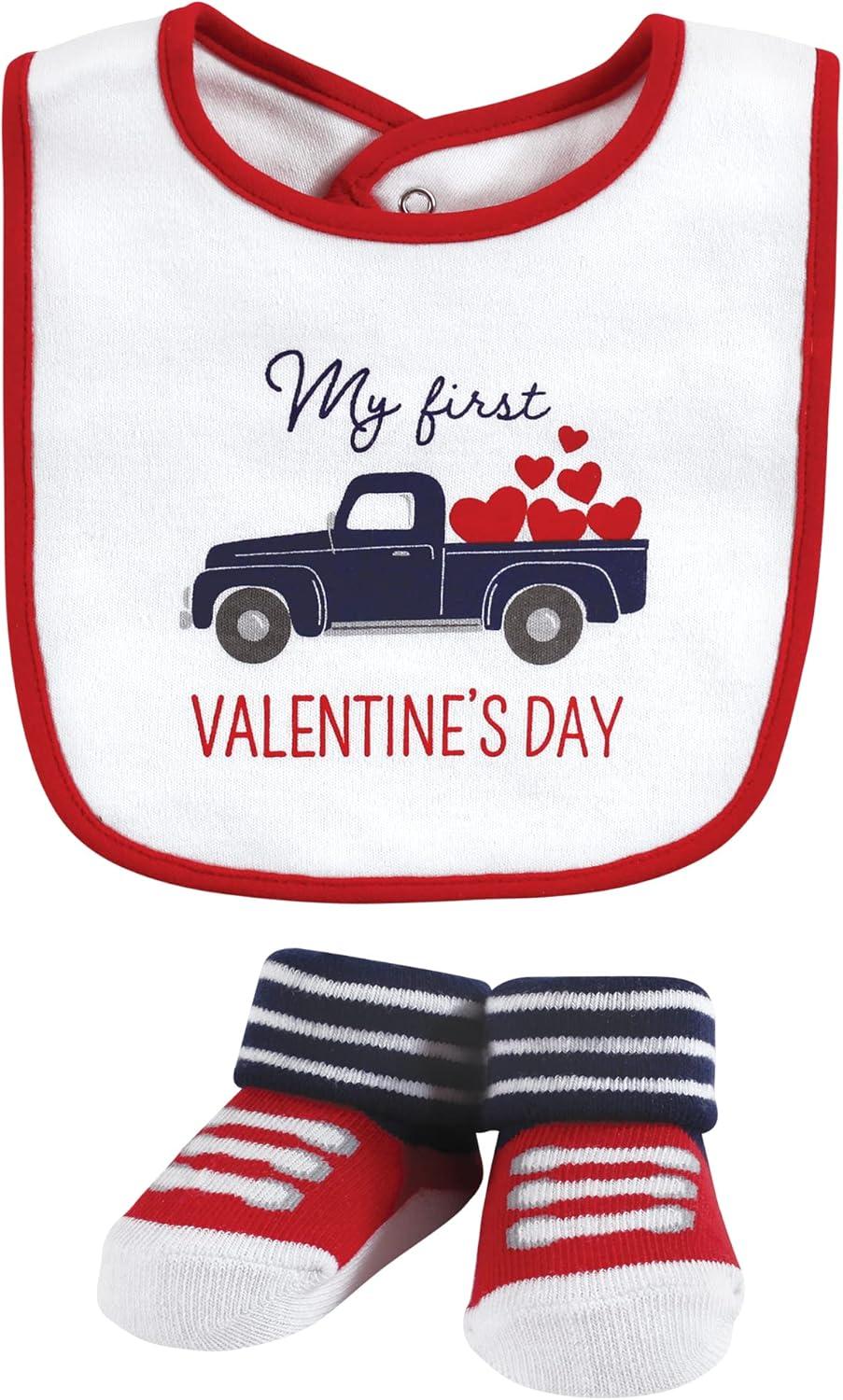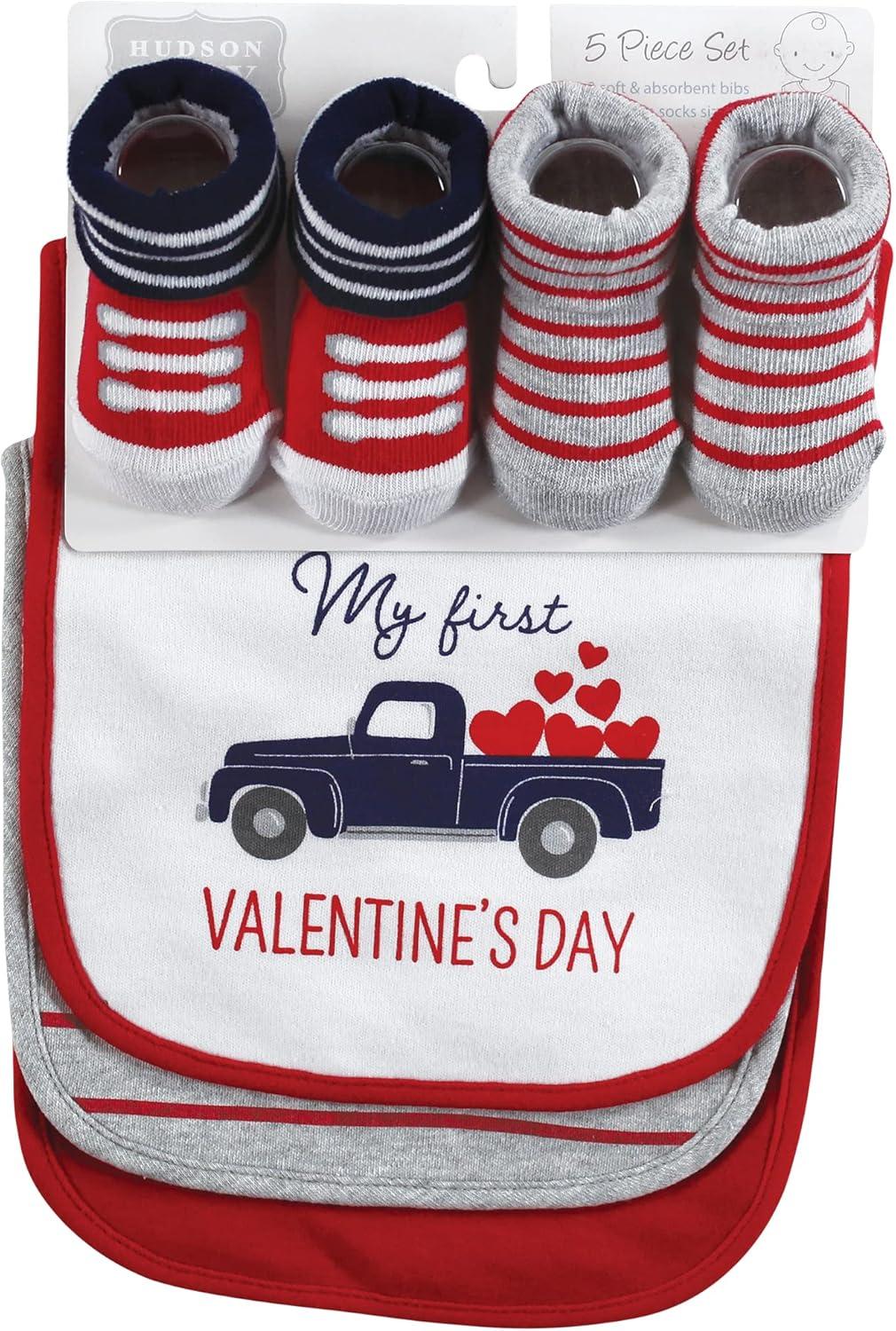 Hudson Baby Unisex BabyCotton Bib and Sock Set(Valentine Truck)