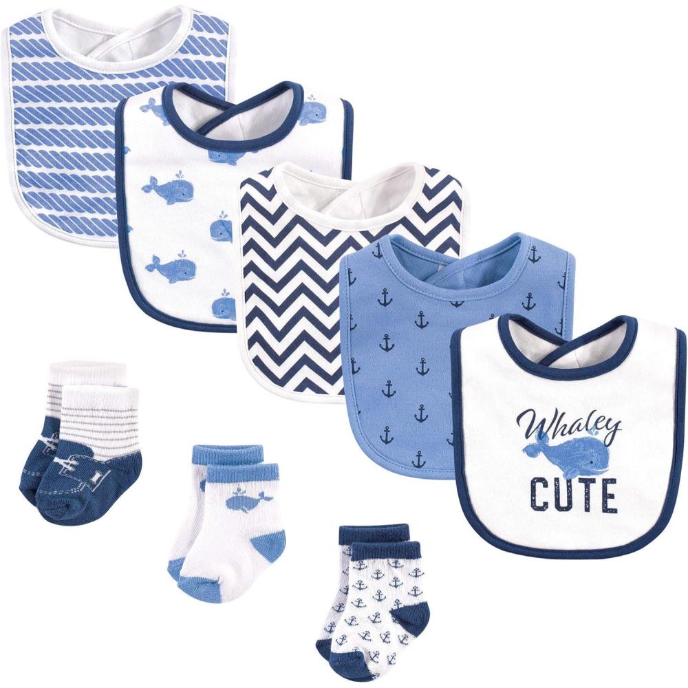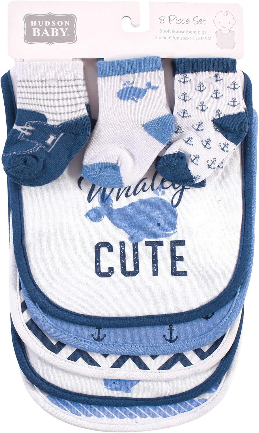 Hudson Baby Unisex BabyCotton Bib and Sock Set(Whaley Cute)
