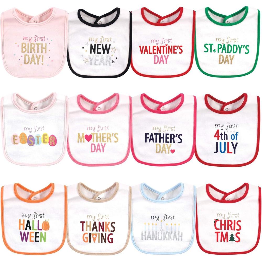 Hudson Baby Unisex BabyCotton Bibs(Holiday Bold Girl)