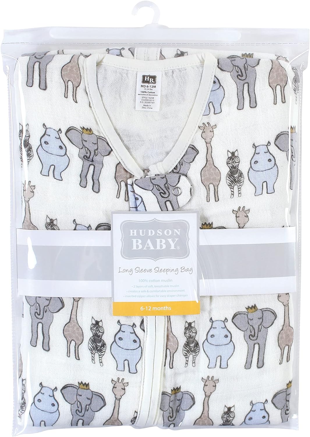 Hudson Baby Unisex BabyLong Sleeve Muslin Sleeping Bag, Wearable Blanket, Sleep Sack