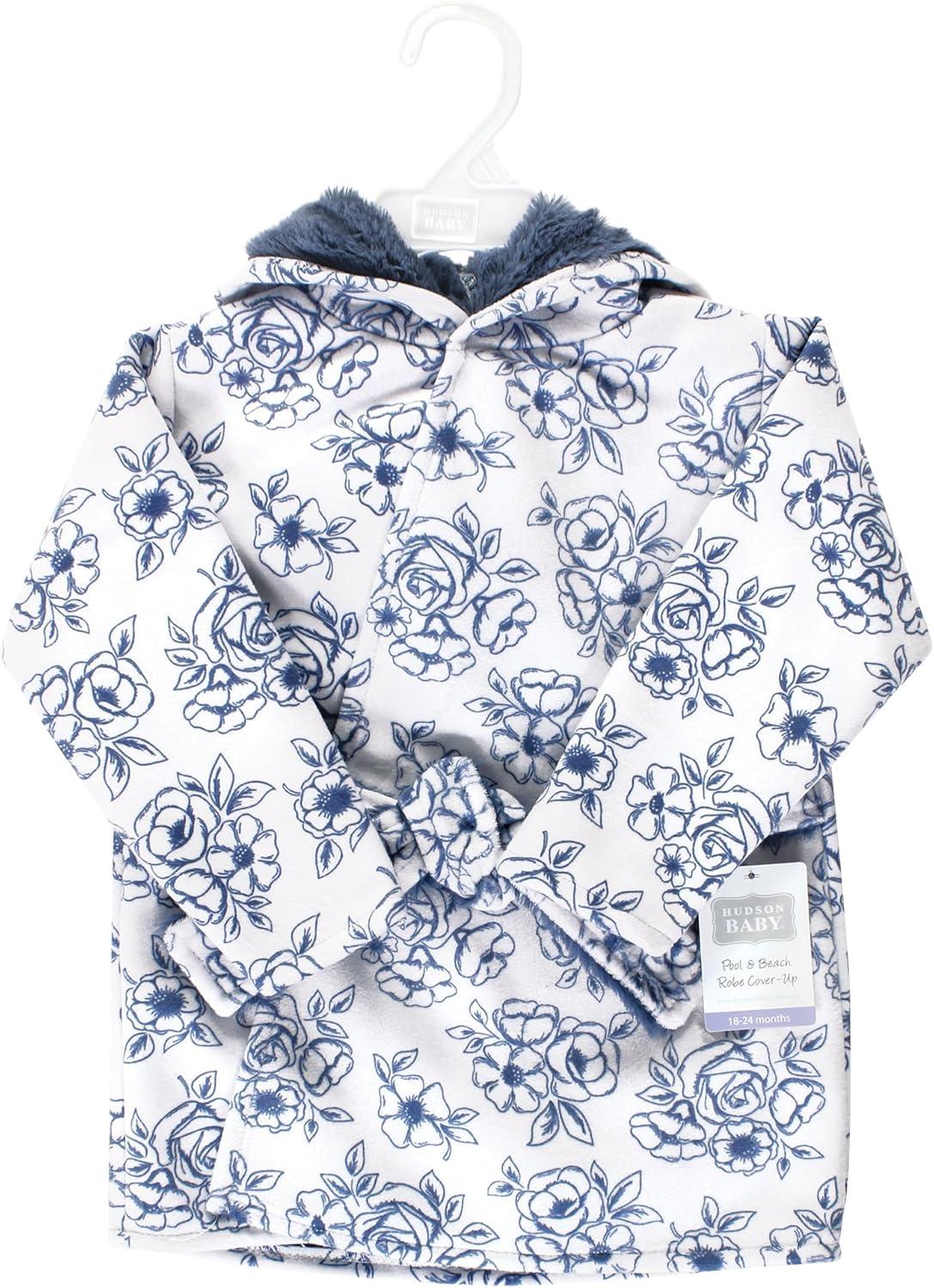 Hudson Baby Unisex BabyMink with Faux Fur Lining Pool and Beach Robe Cover-ups(Blue Toile)