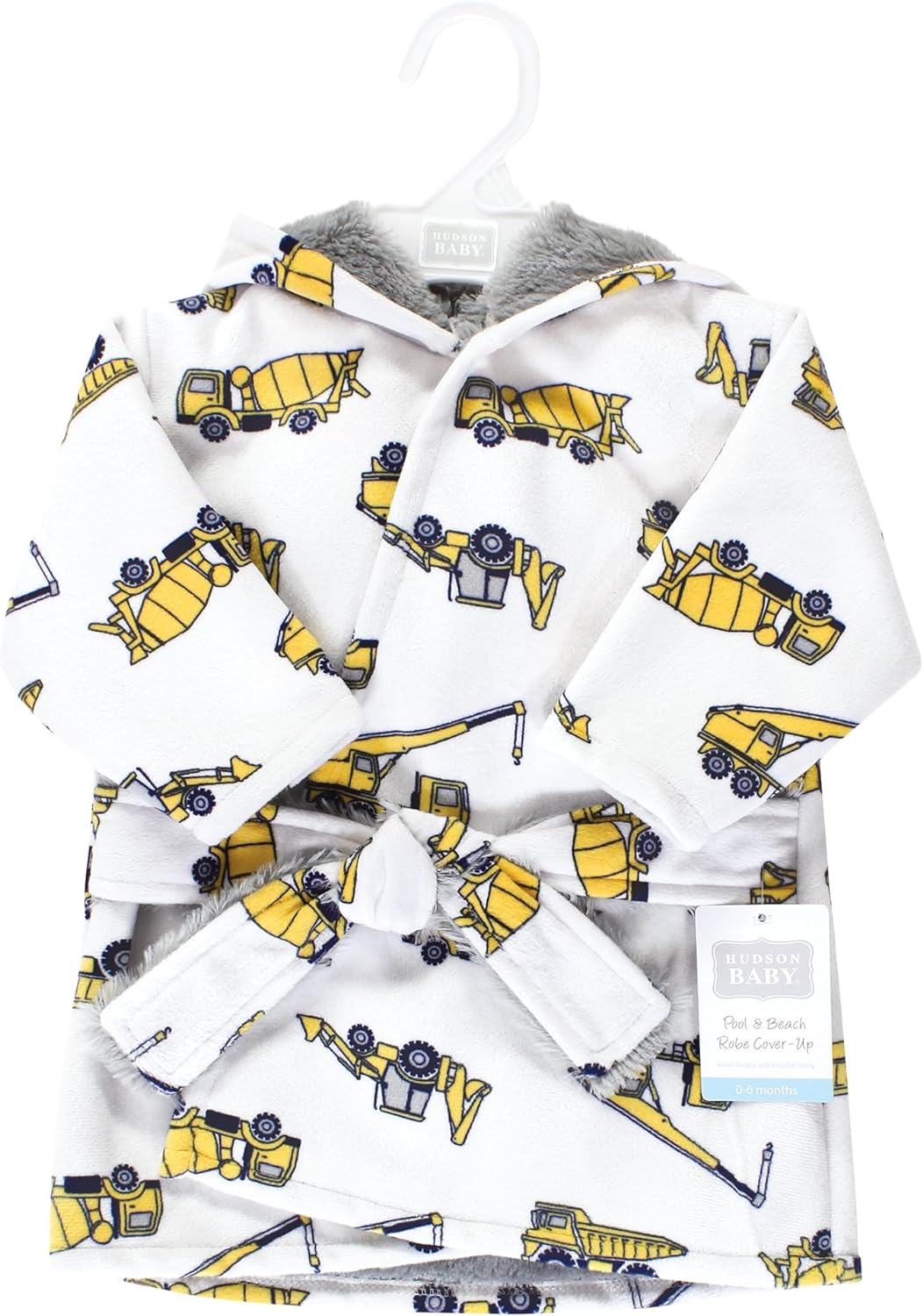 Hudson Baby Unisex BabyMink with Faux Fur Lining Pool and Beach Robe Cover-ups(Construction Work)