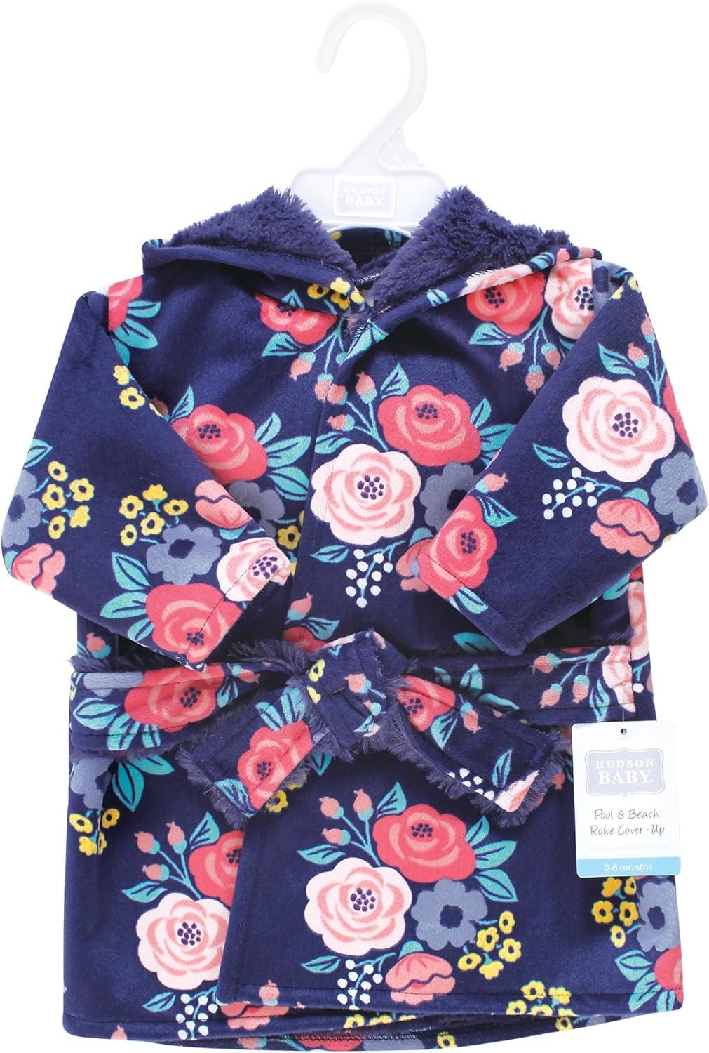 Hudson Baby Unisex BabyMink with Faux Fur Lining Pool and Beach Robe Cover-ups(Navy Bold Floral)