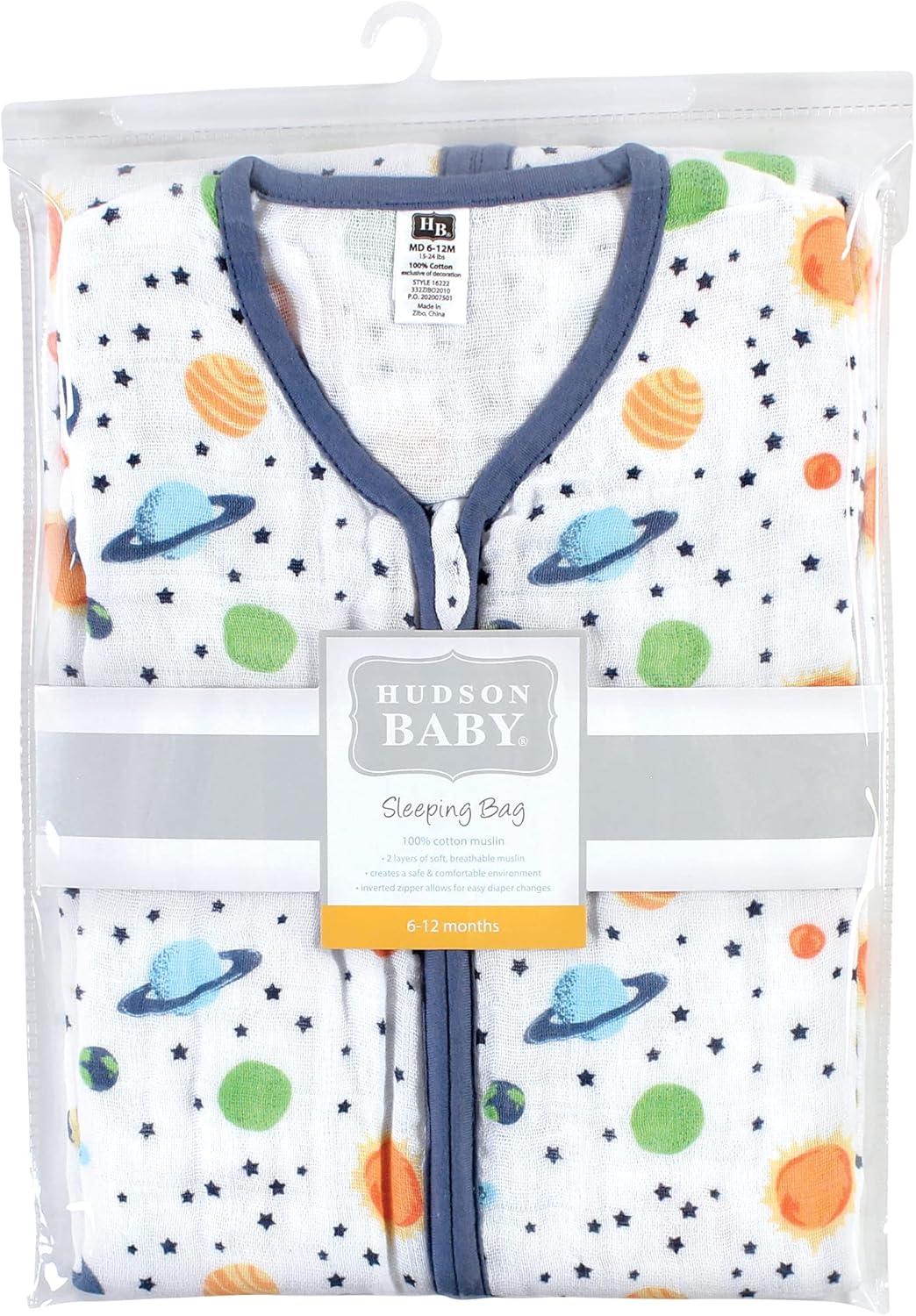 Hudson Baby Unisex BabyMuslin Cotton Sleeveless Wearable Sleeping Bag, Sack, Blanket(Space)