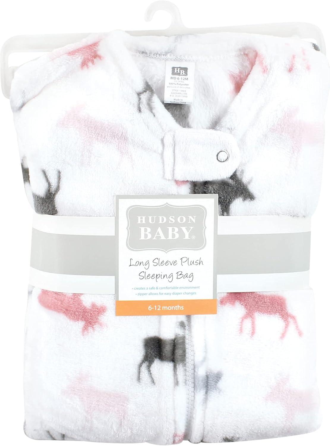 Hudson Baby Unisex BabyPlush Sleeping Bag, Sack, Blanket(Pink Moose Long Sleeve)