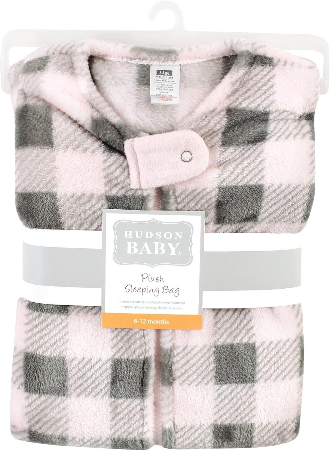 Hudson Baby Unisex BabyPlush Sleeping Bag, Sack, Blanket(Sleeveless Pink Gray Plaid)