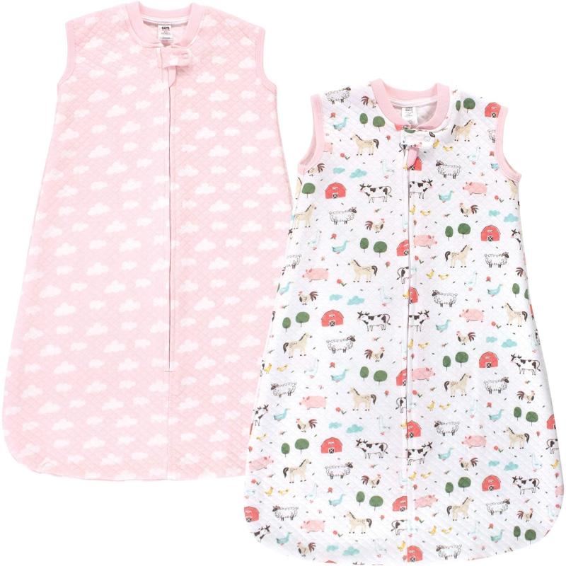 Hudson Baby Unisex BabyPremium Quilted Sleeveless Sleeping Bag and Wearable Blanket(Girl Farm Animals)