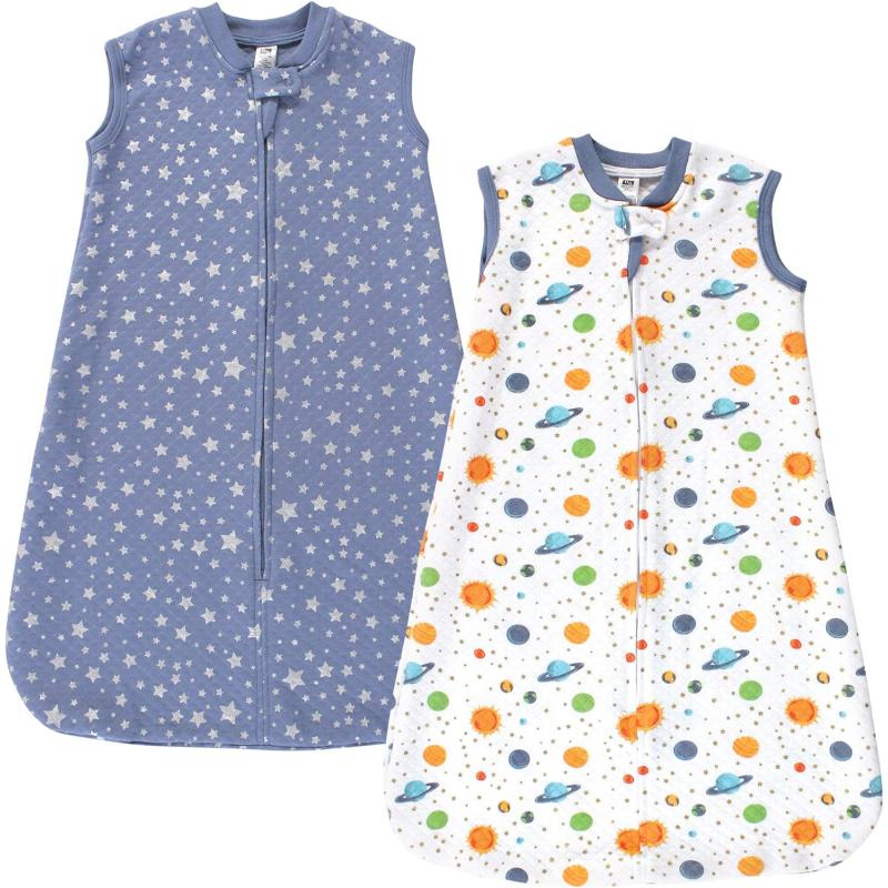 Hudson Baby Unisex BabyPremium Quilted Sleeveless Sleeping Bag and Wearable Blanket(Space 2-pack)