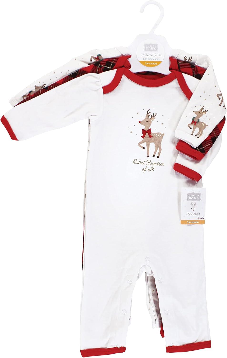 Hudson Baby unisex-child Cotton Coveralls(Fancy Rudolph)