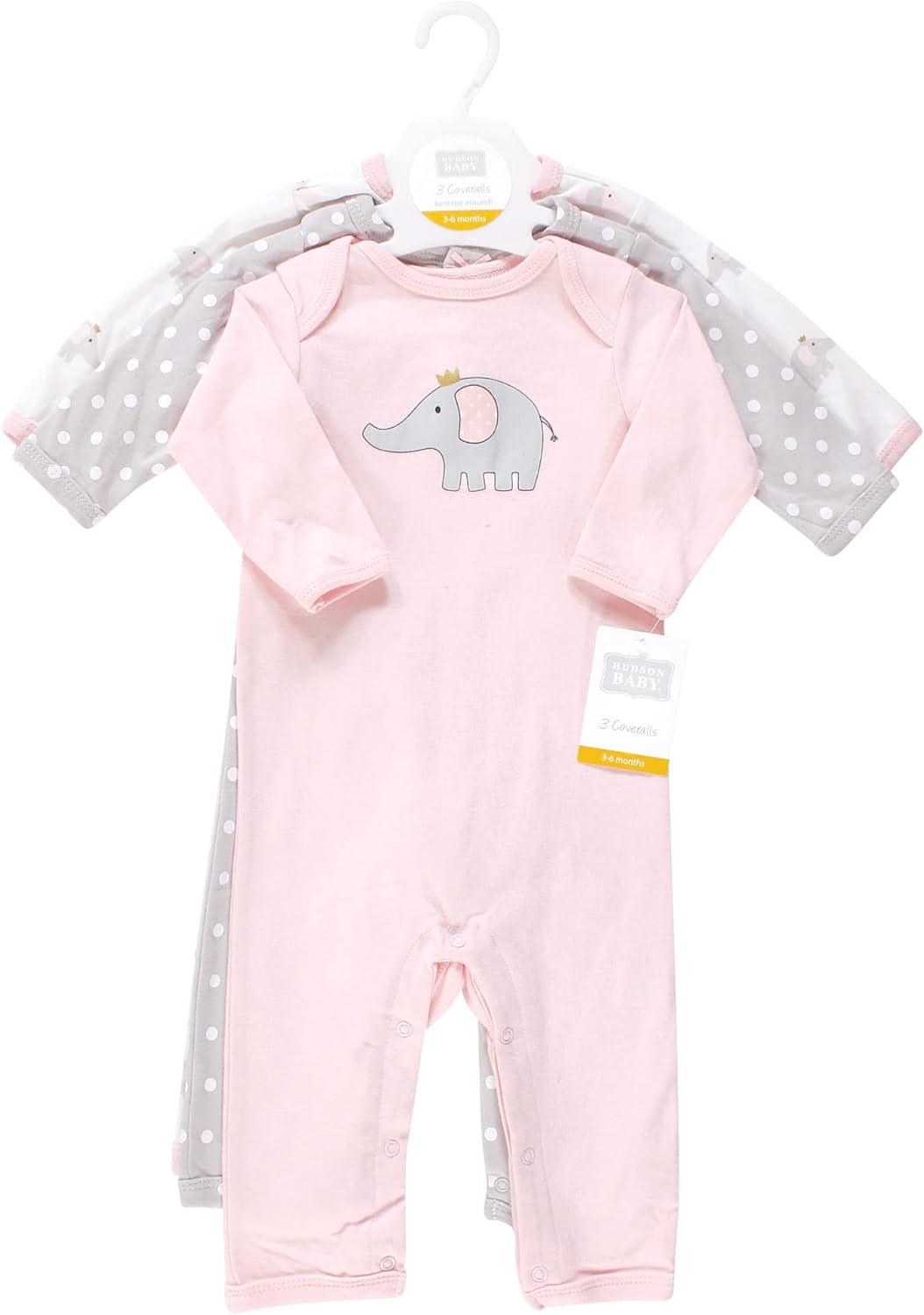 Hudson Baby unisex-child Cotton Coveralls(Pink Gray Elephant)