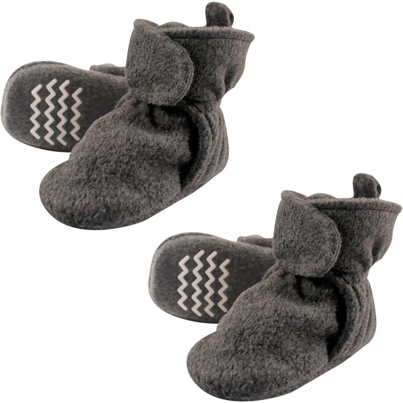 Hudson Baby Unisex-Child Cozy Fleece Booties Slipper Sock(Dark Gray 2-piece)