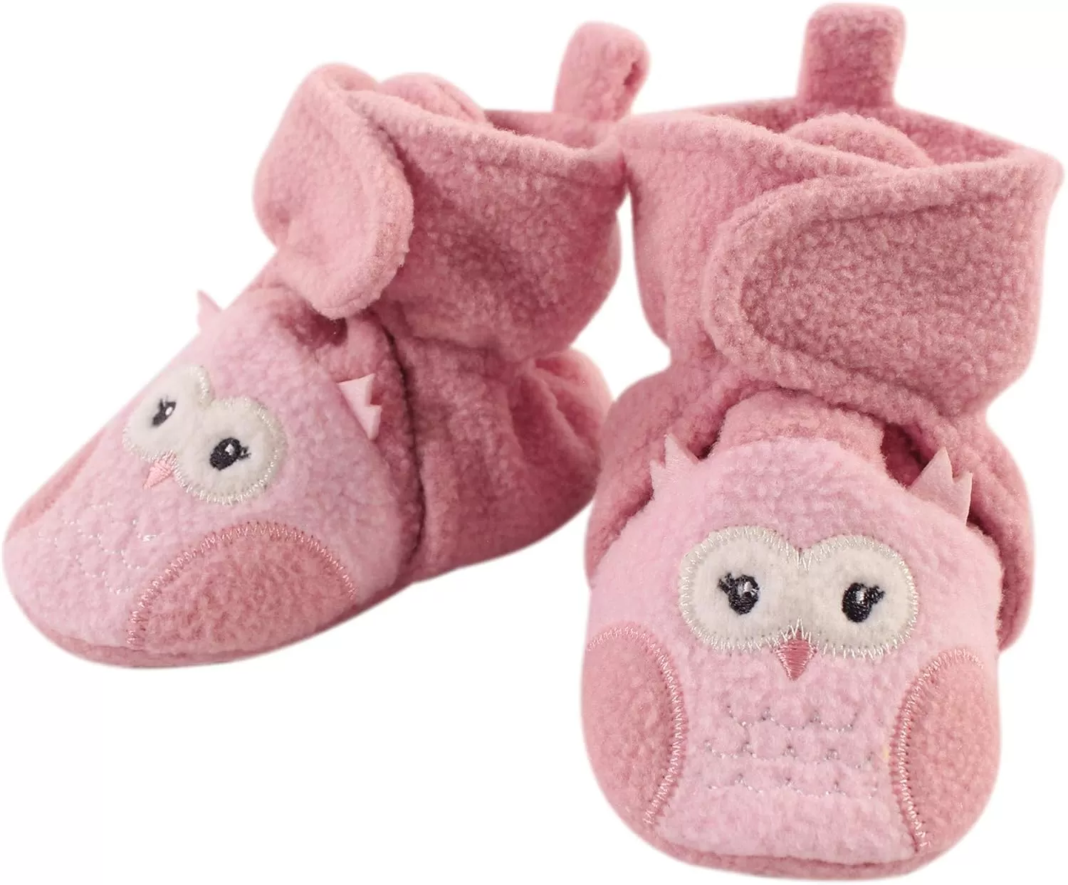 Hudson Baby Unisex-Child Cozy Fleece Booties Winter Accessory Set(Pink Owl)