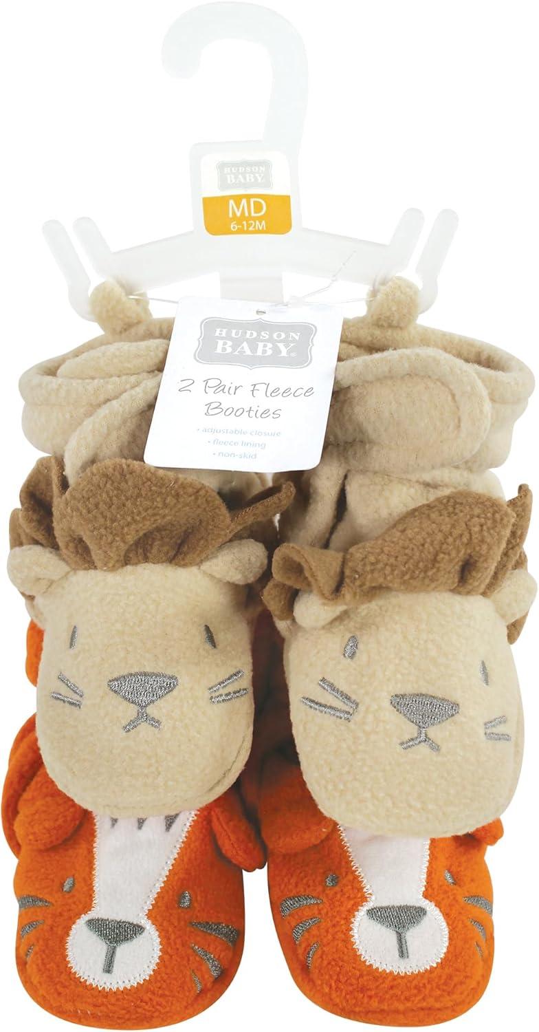 Hudson Baby Unisex-Child Cozy Fleece Booties(Lion Tiger)