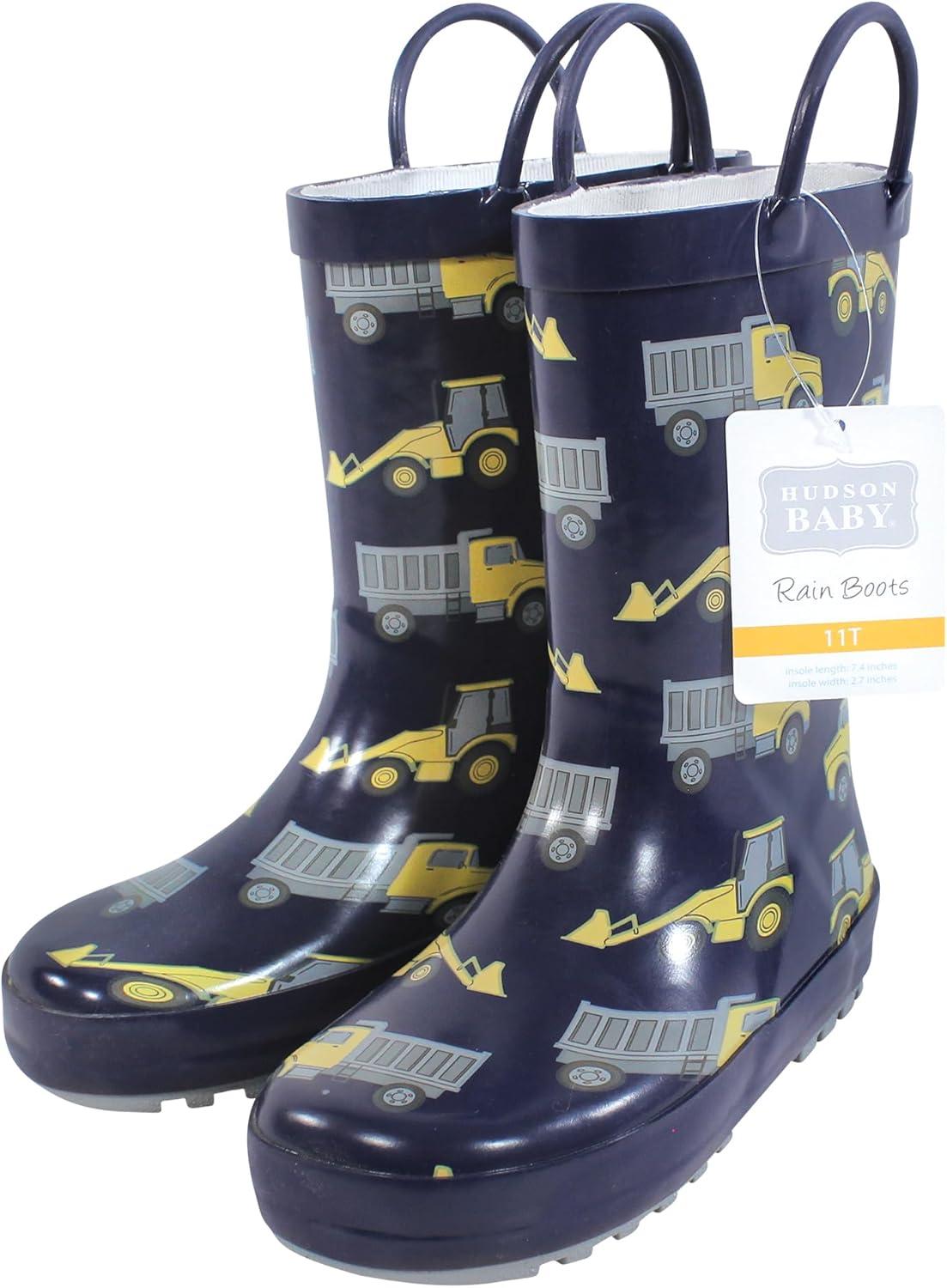 Keep your child's feet dry and comfortable all year round with our adorable Hudson Baby Kids Rainboots! These boots are 100% waterproof, featuring a streamlined design that keeps water out, no matter how big the puddles are. The soft, flexible PVC material allows kids to run, skip, and jump without feeling stiff or constrained. Here are some of the features that parents love: Waterproof construction keeps feet dry in rain, snow, and mud, 100% rubber upper is durable and easy to clean, Flexible outsole provides traction and support on any terrain, 2 pull-on loops make it easy for kids to put on and take off their boots, Available in a variety of colors to suit your child's personality. Customers love these boots for their: Color – Available in a variety of bright and cheerful colors. Water resistance – Keeps feet dry in even the heaviest rain. Fit and comfort – The boots are designed to be comfortable and easy to wear. Durability – The boots are made from high-quality materials that can withstand wear and tear. These boots are perfect for rainy days, muddy trails, hiking, camping, playing in puddles and much more!