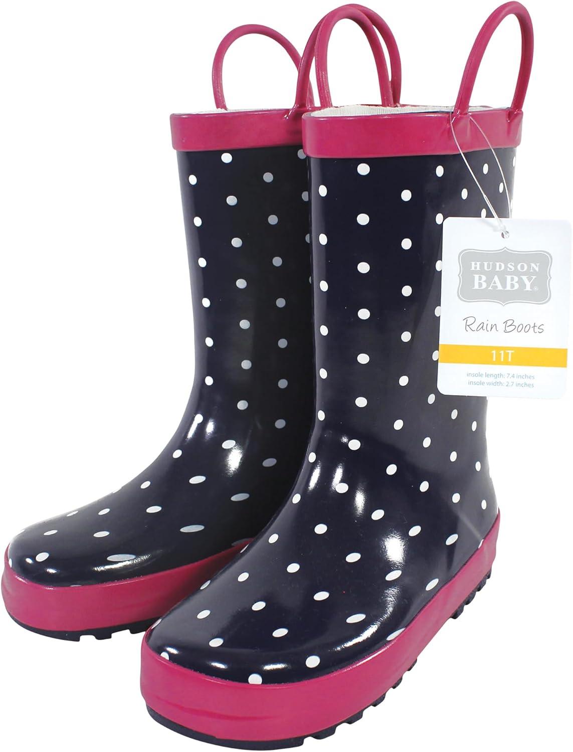 Hudson Baby Unisex-Child Rain Boot(Navy Dots Pink)