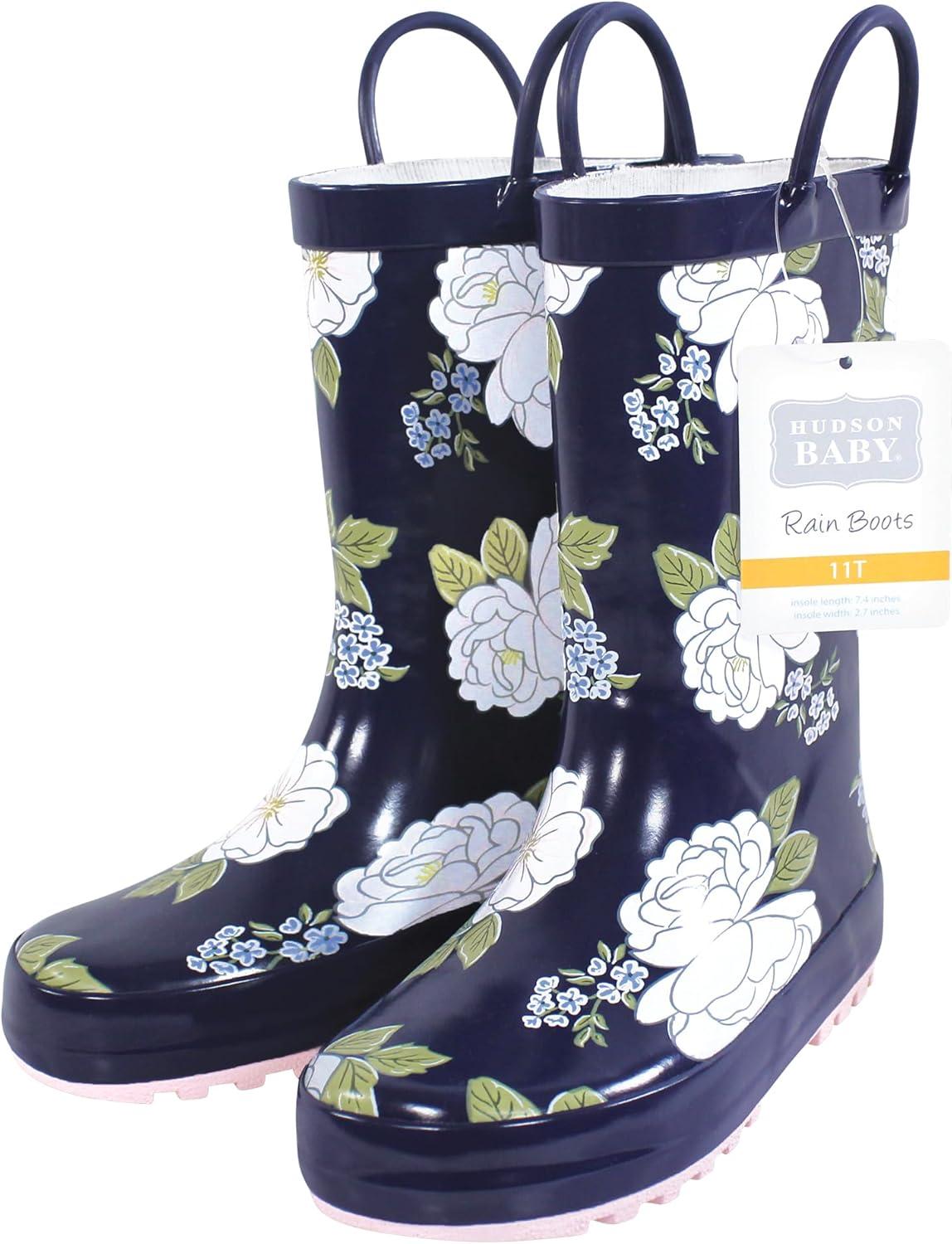 Hudson Baby Unisex-Child Rain Boot(White Peonies)