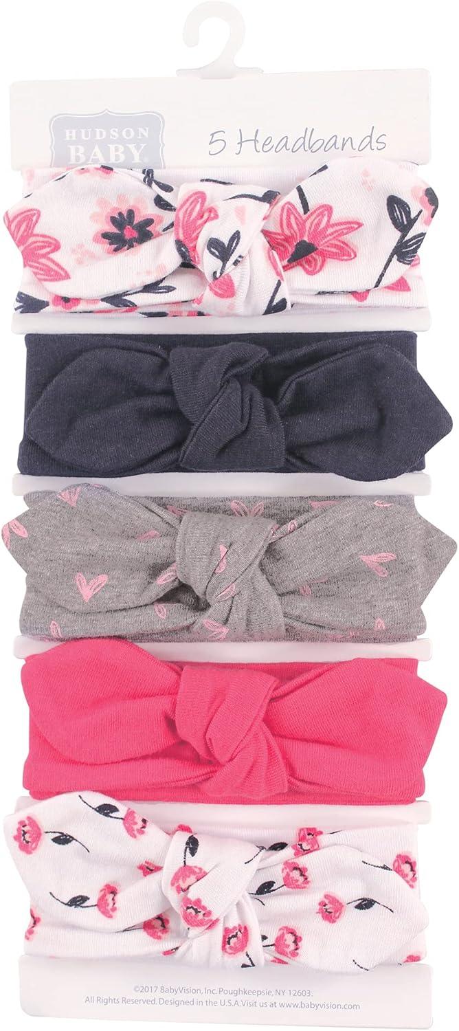 Hudson Baby headbands are a great, stylish accessory for your little girl. Featuring adorable bows, prints and colors, our stretchy and soft headbands will be comfortable and cozy on your little one's head while making her the most fashionable baby in the neighborhood. Whether holding hair back or just for a fun accessory, our headbands will always be up to the task. Every pack comes with variety, making it easy to mix and match perfectly with her outfits.