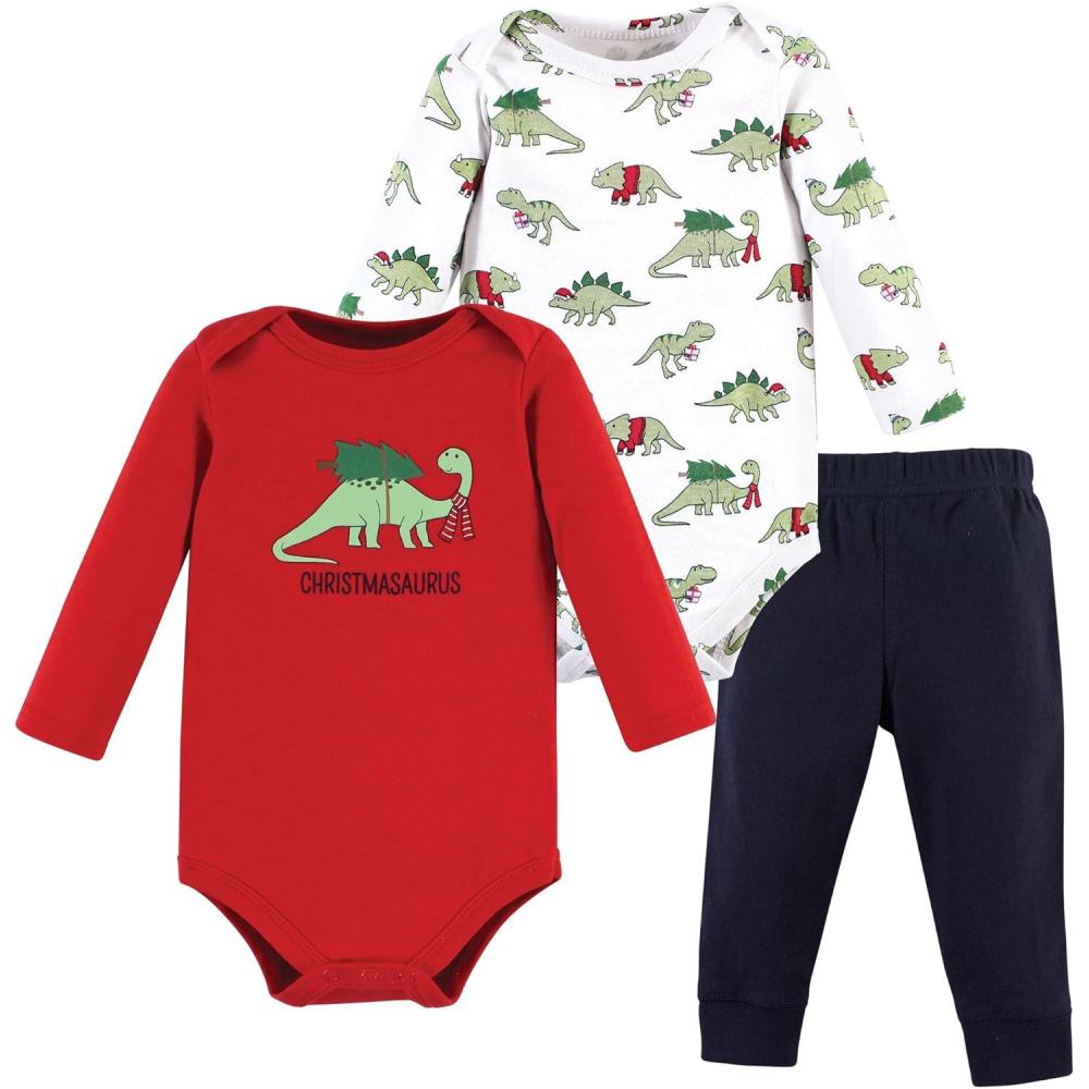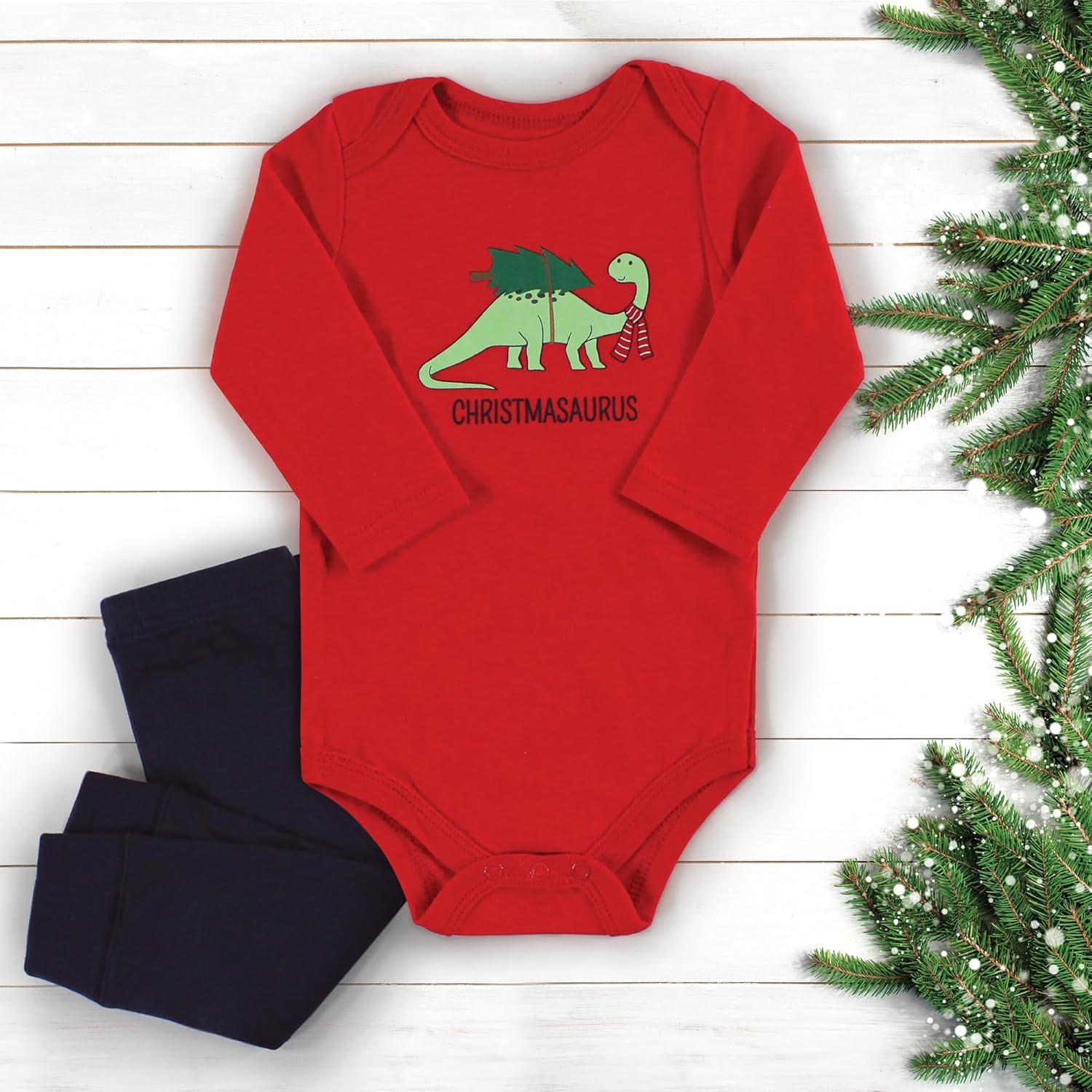 Hudson Baby Unisex Cotton Bodysuit and Pant Set(Christmasaurus)
