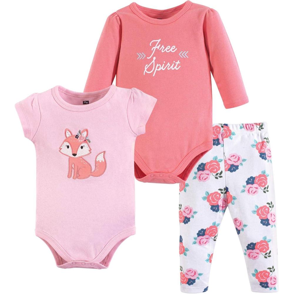 Hudson Baby Unisex Cotton Bodysuit and Pant Set(Floral Fox)