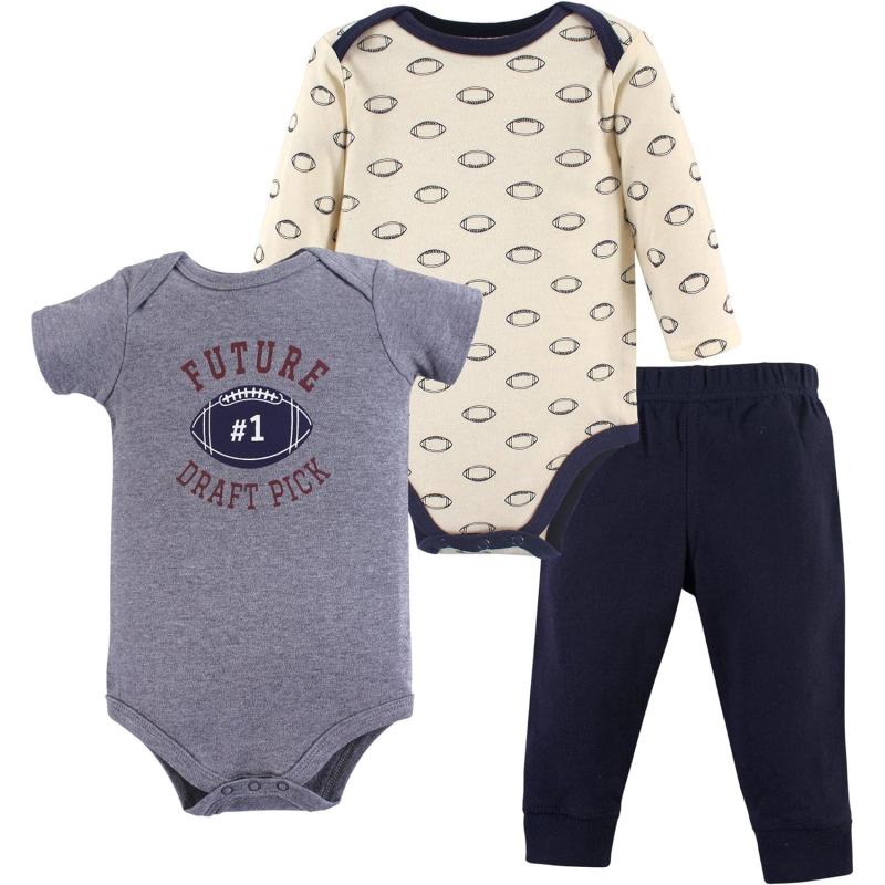 Hudson Baby premium layette collection of high quality cute baby clothing features 100% premium cotton for the softest touch on your baby's gentle skin. This short sleeve and long sleeve bodysuit with pant set is perfect for cooler weather! Bodysuits have stretchable neck opening to go over baby's head easily. Pants can match either bodysuit. Clothing is made of 100% super soft cotton and durable for everyday wear.