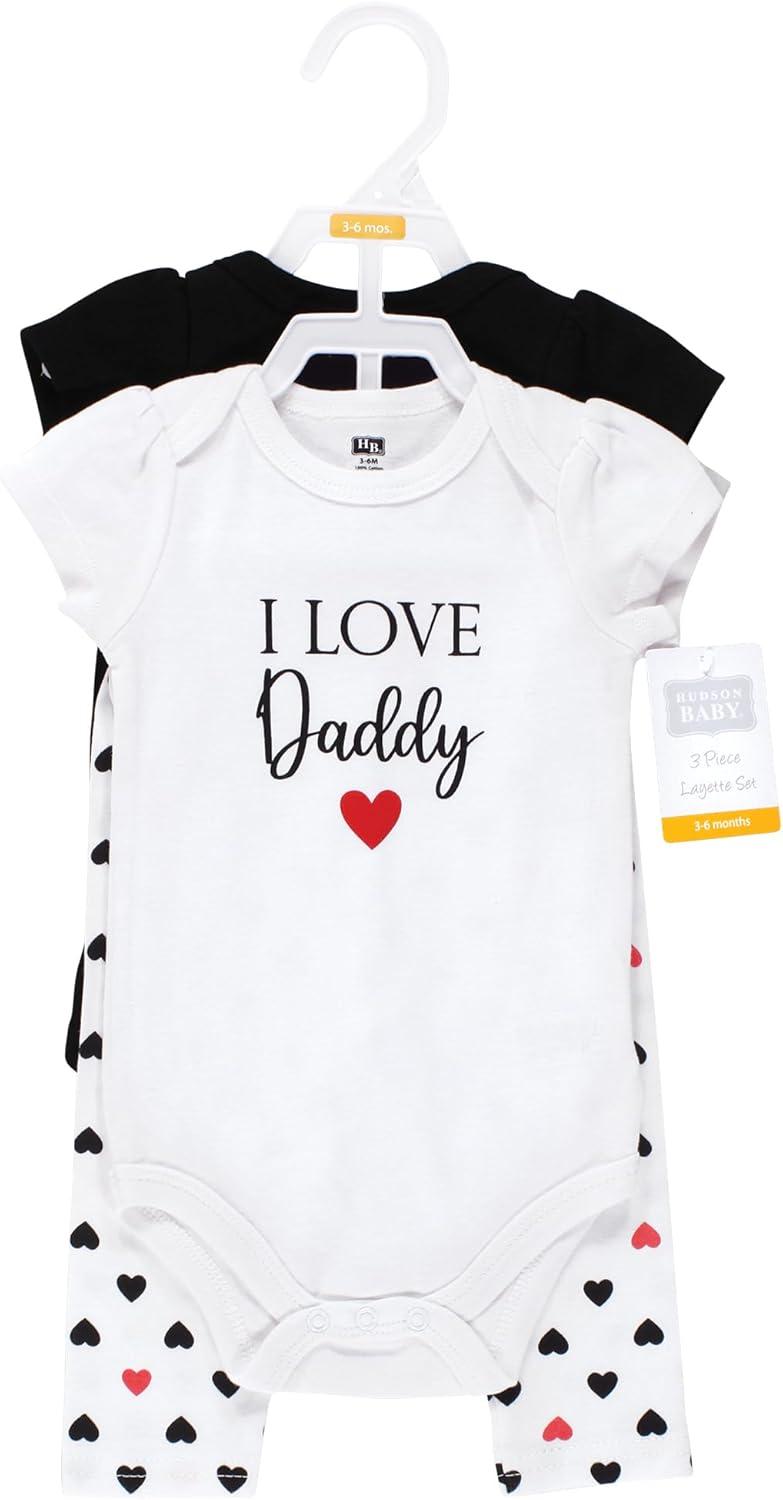 Hudson Baby Unisex Cotton Bodysuit and Pant Set(Girl Daddy Red Black)